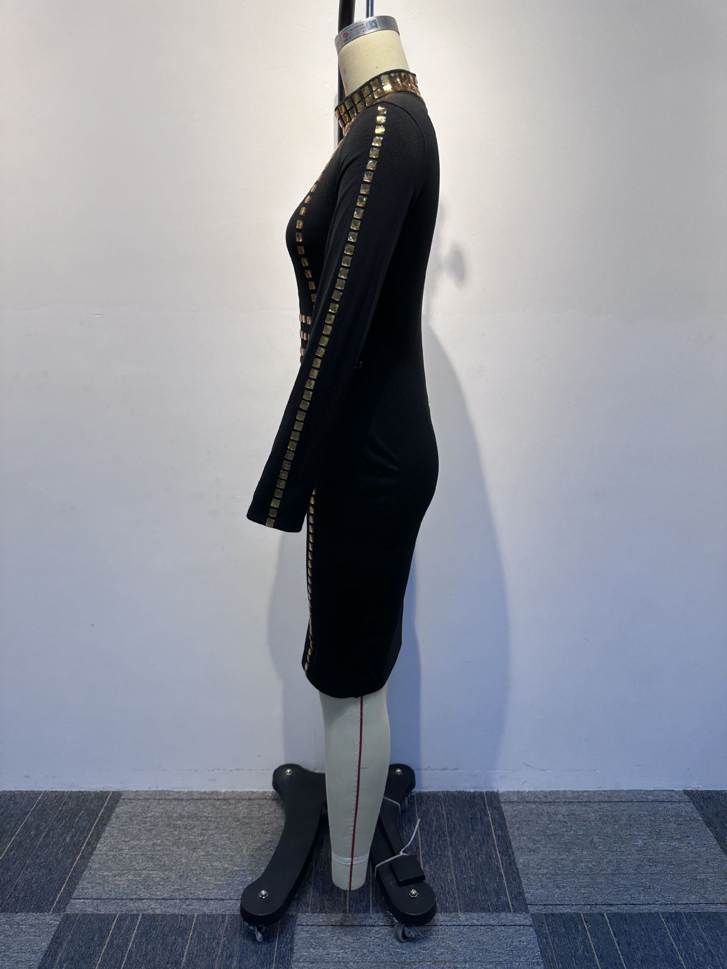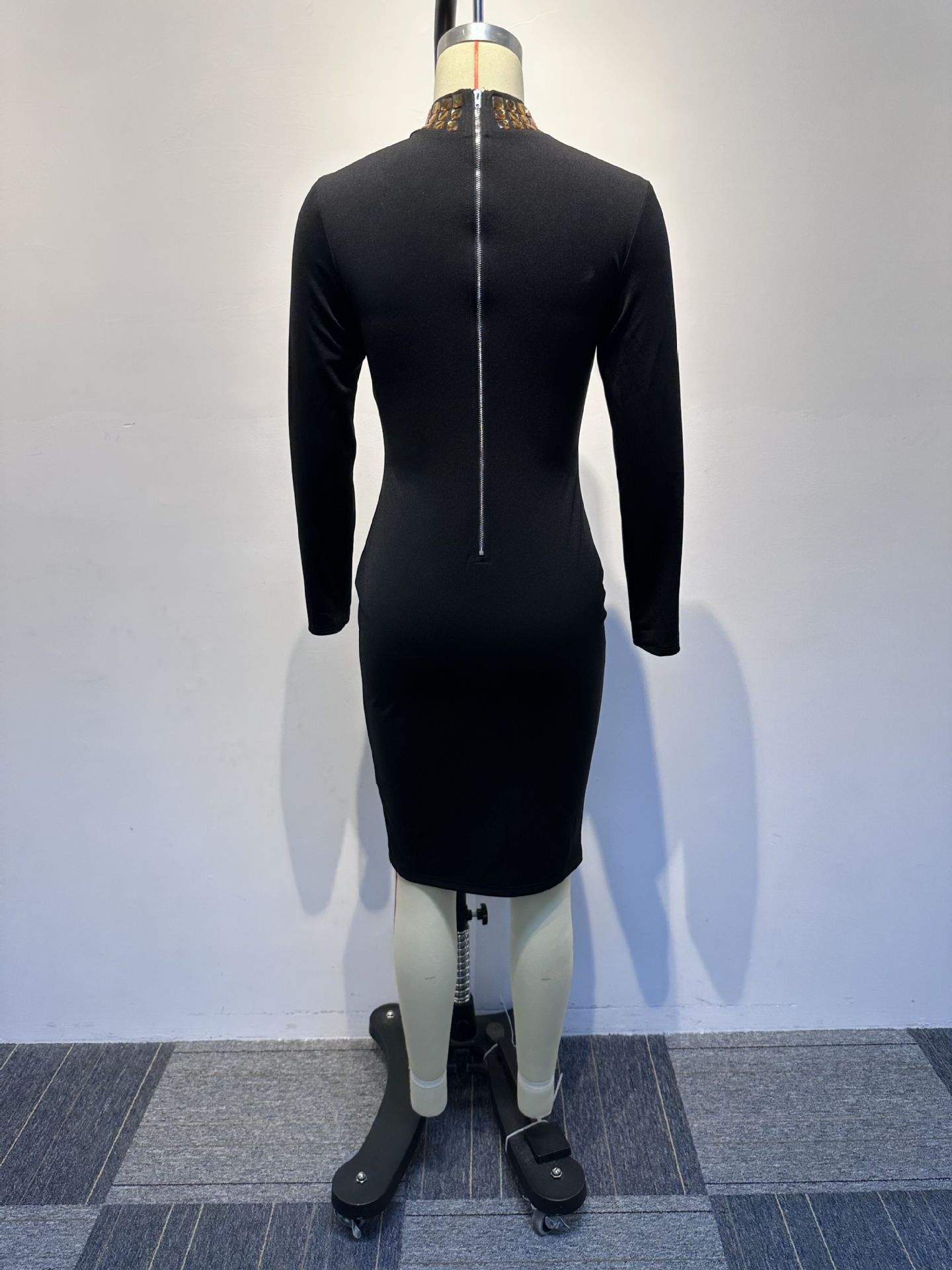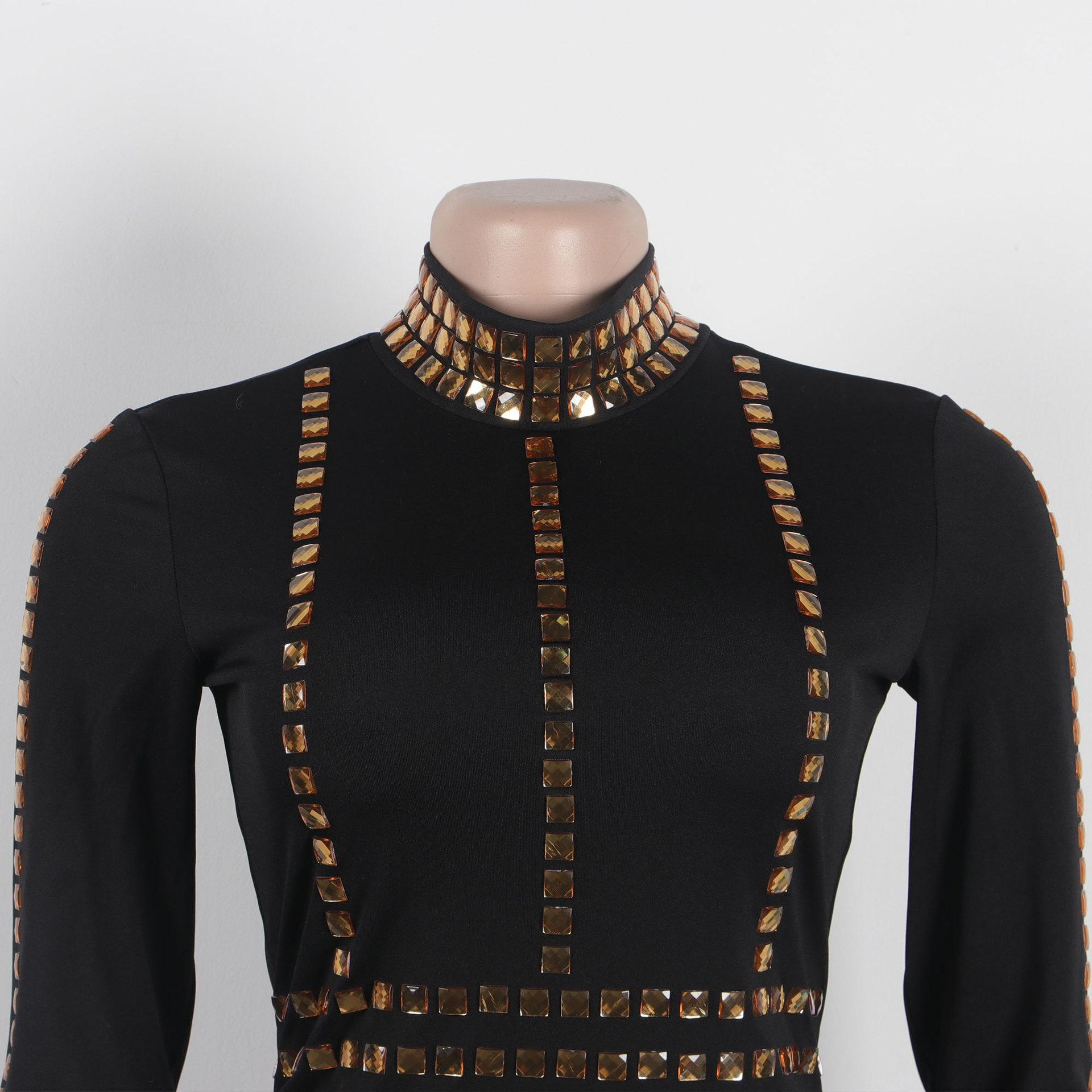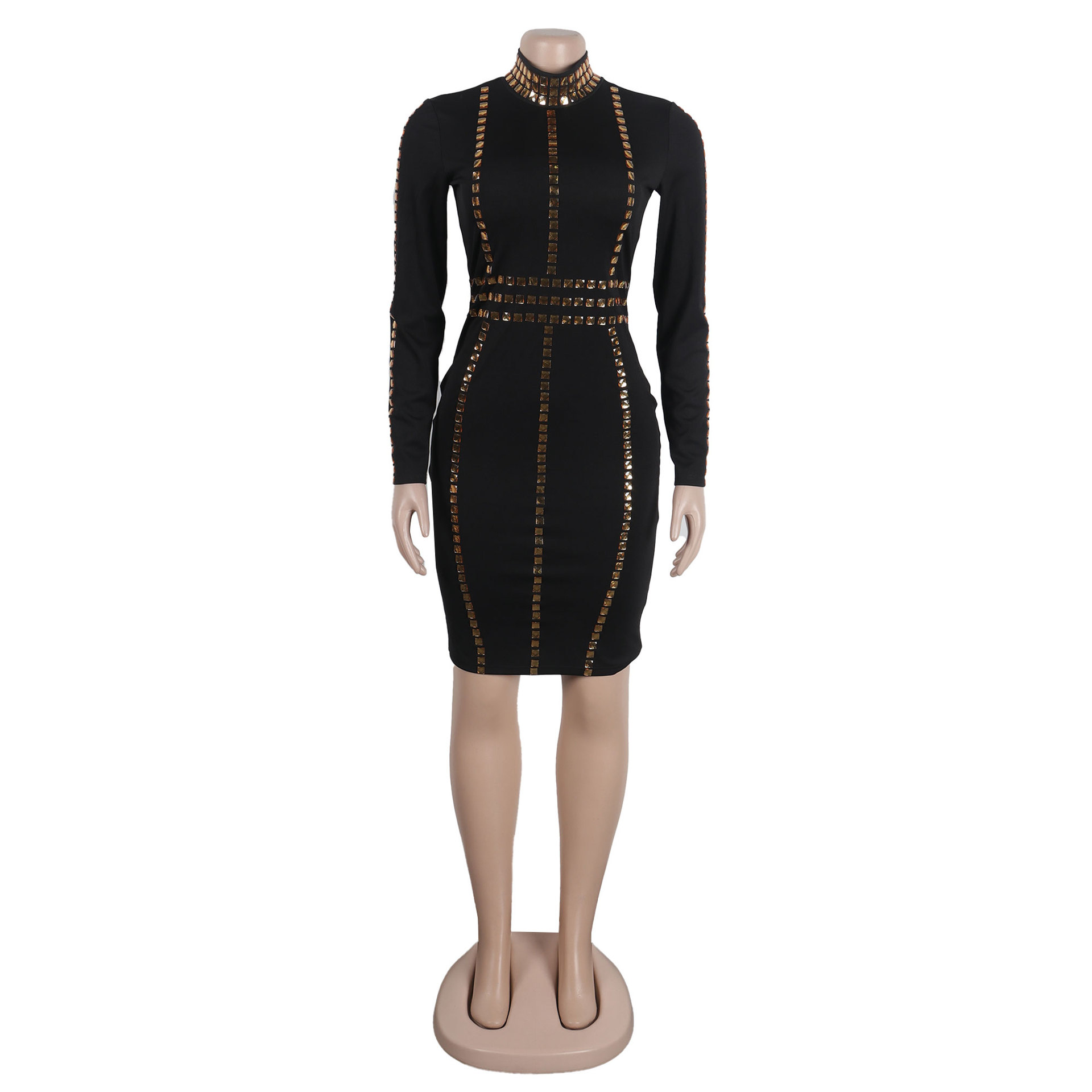 Popular elements: slim rhinestone stretch skinny sheath long sleeve dress