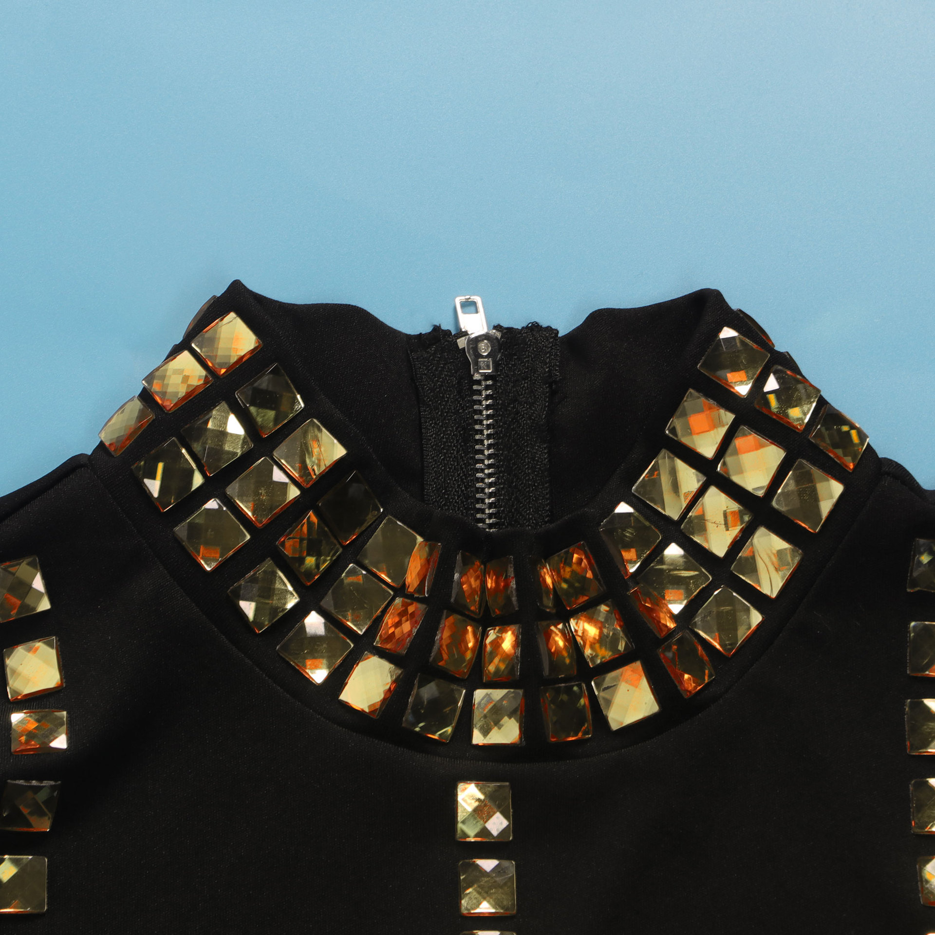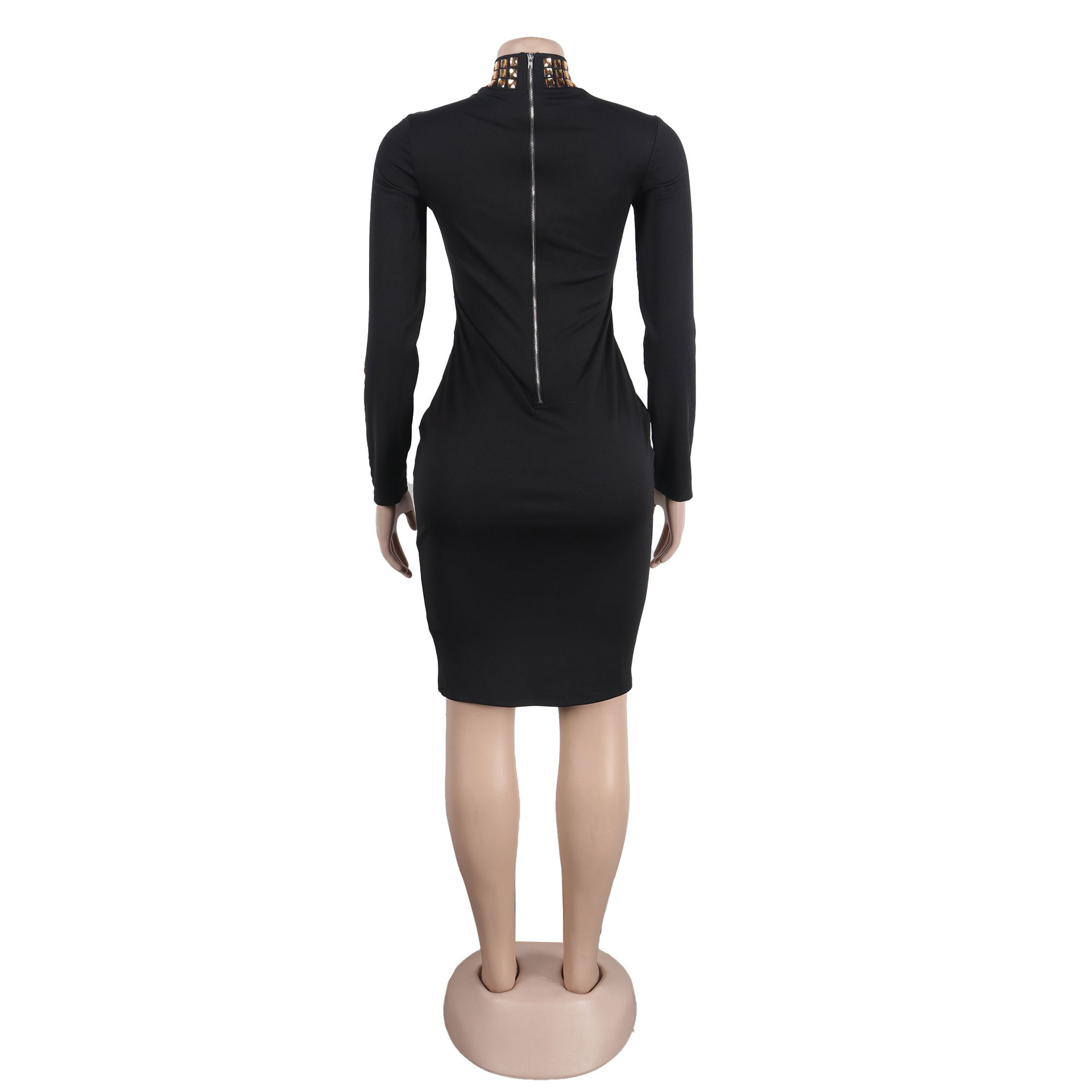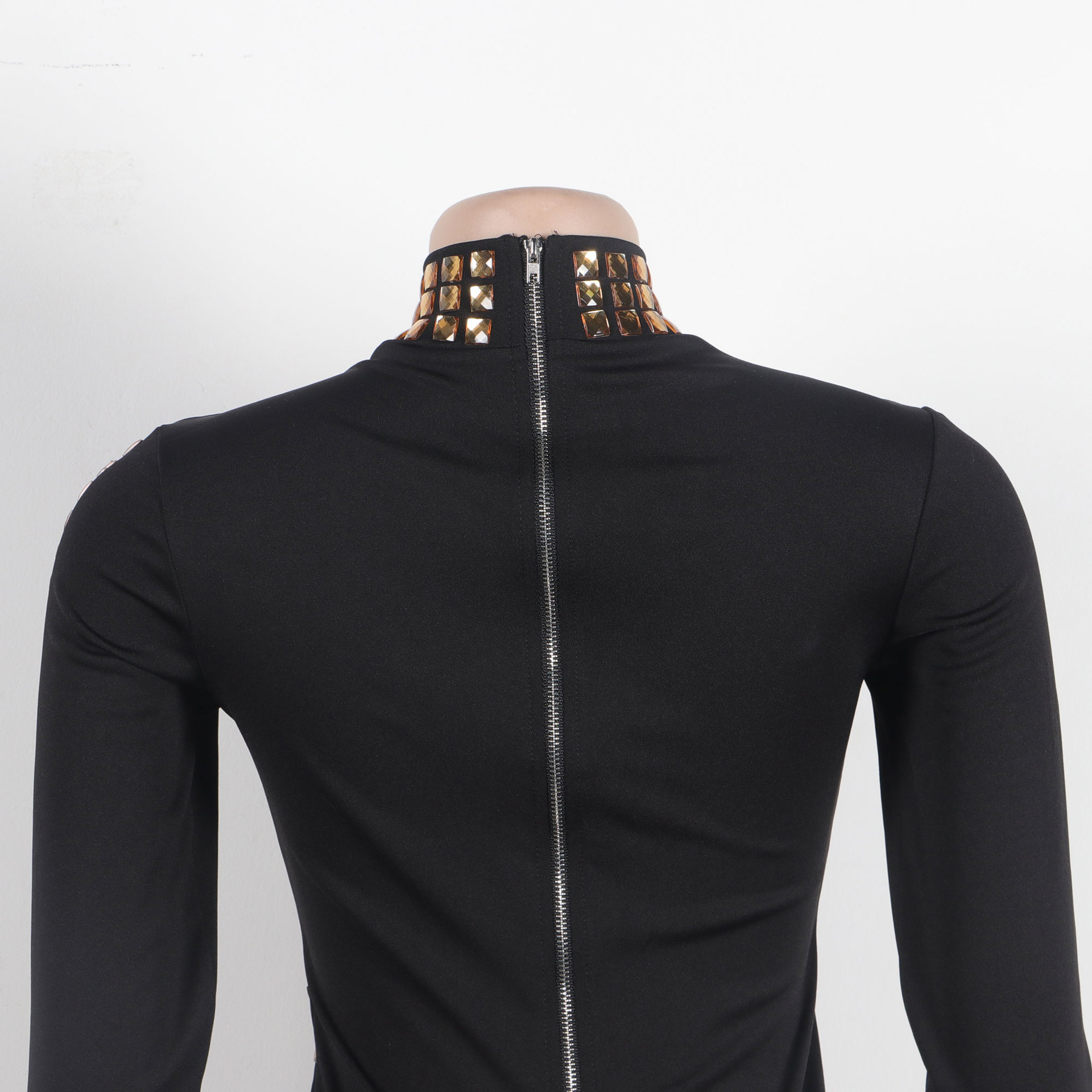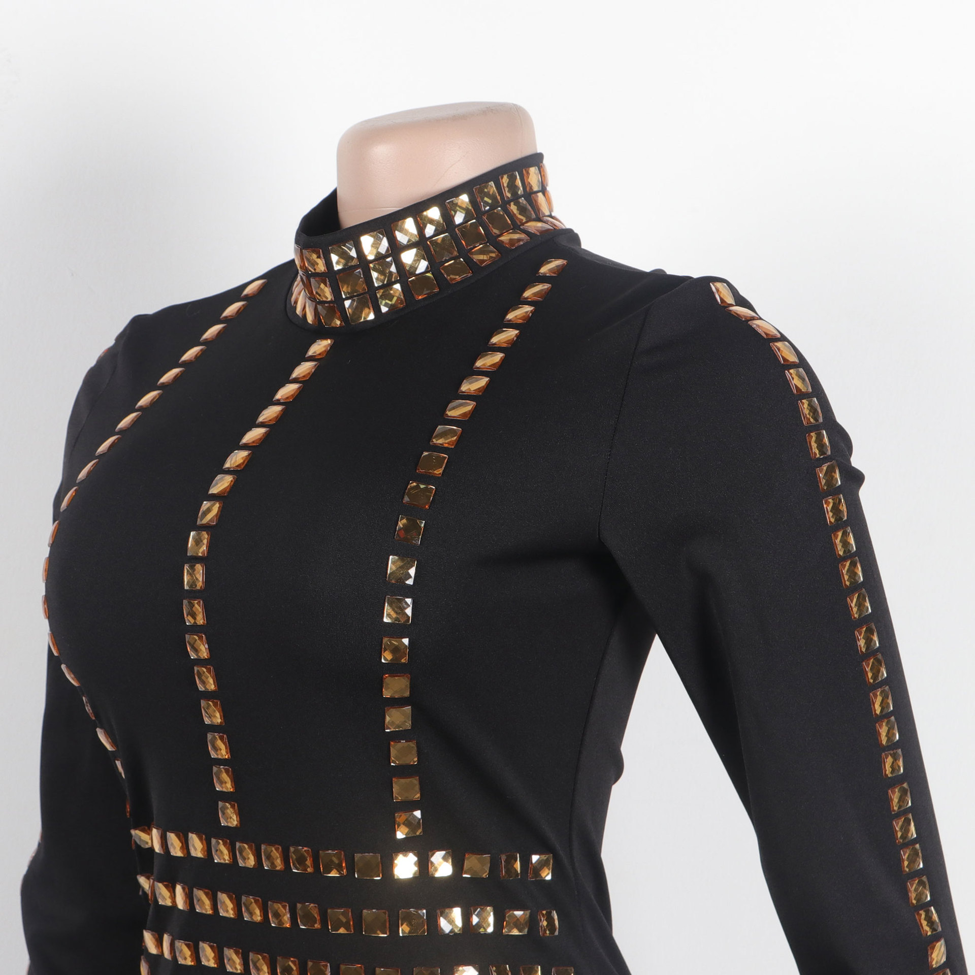 Popular elements: slim rhinestone stretch skinny sheath long sleeve dress