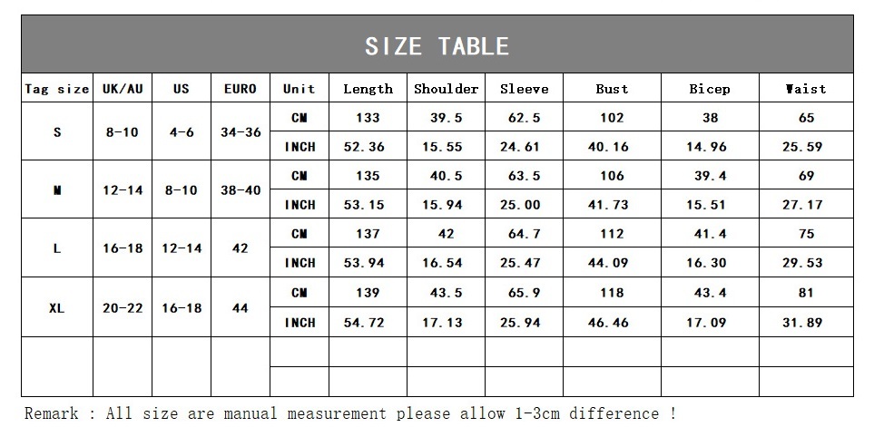 1. Asian sizes are 1 to 2 sizes smaller than European and American people. Choose the larger size if your size between two sizes. Please allow 2-3cm differences due to manual measurement. 2. Please check the size chart carefully before you buy the item, if you don't know how to choose size, please contact our customer service. 3.As you know, the different computers display colors differently, the color of the actual item may vary slightly from the following images.
