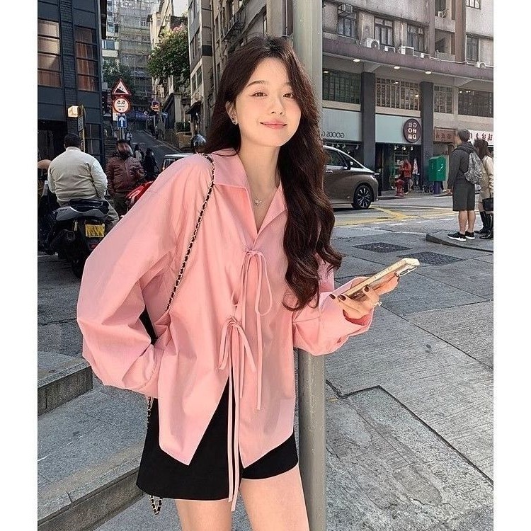 Color: Berlin Blue (bow-tie tie-front shirt), Cherry Blossom Pink (bow-tie tie-front shirt)