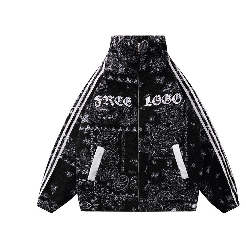 Lamb Wool Coat National Tide Retro Cashew Flower Stand Collar Plush Cotton Jacket