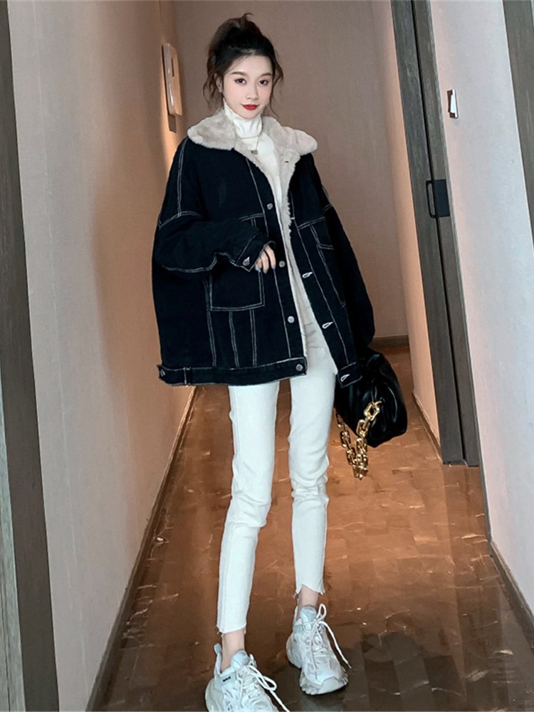 Lamb wool denim jacket*1