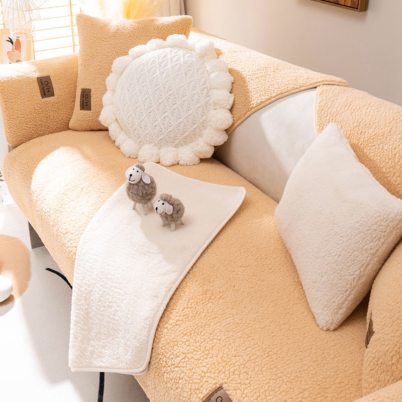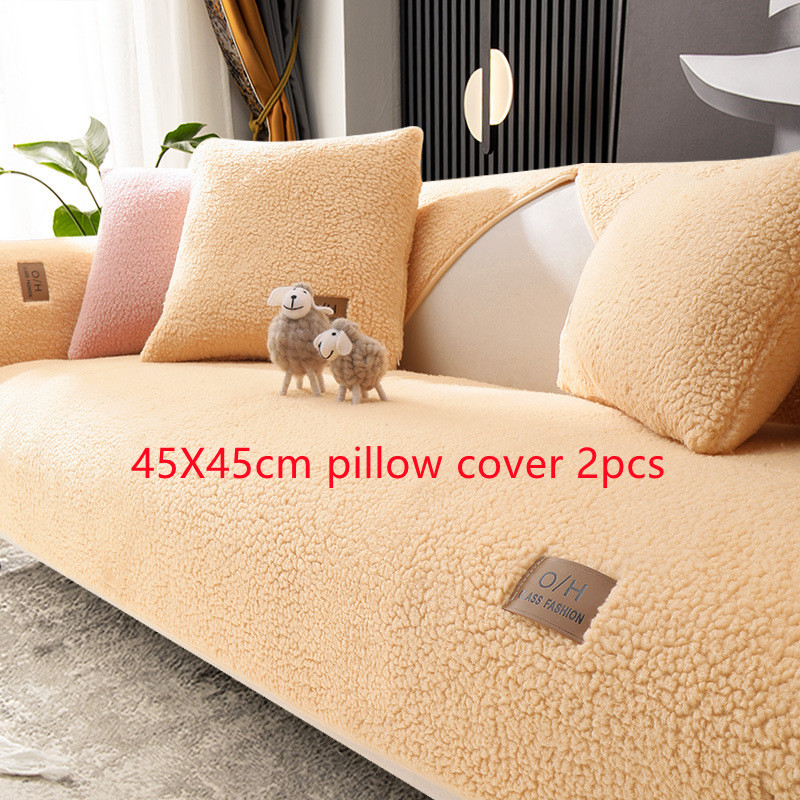 Lamb's Wool Sofa Cushion Winter Model Non-slip Solid Color