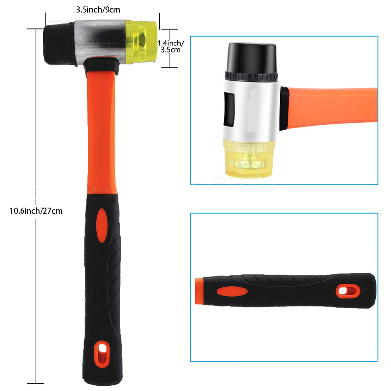 1x Double-Faced Mallet – Features a solid rubber head (35mm) and a high-strength fiberglass handle with a non-slip grip to reduce vibration.
