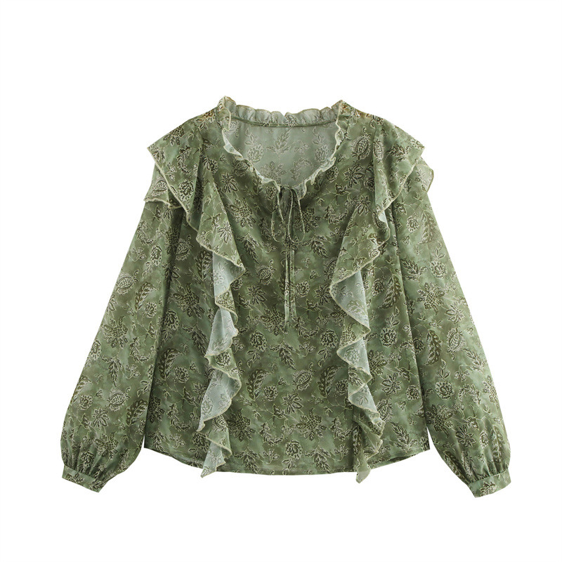 Laminated Decoration Gentle And Stylish Printed Round Neck Shirt