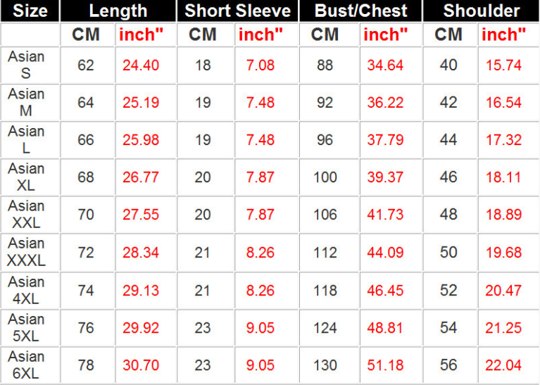 Size: S, M, L, XL, 2XL, 3XL, 4XL, 5XL, 6XL, 100, 110, 120, 130, 140, 150, 160