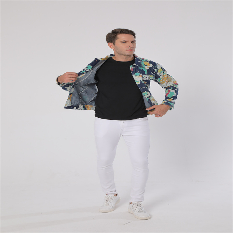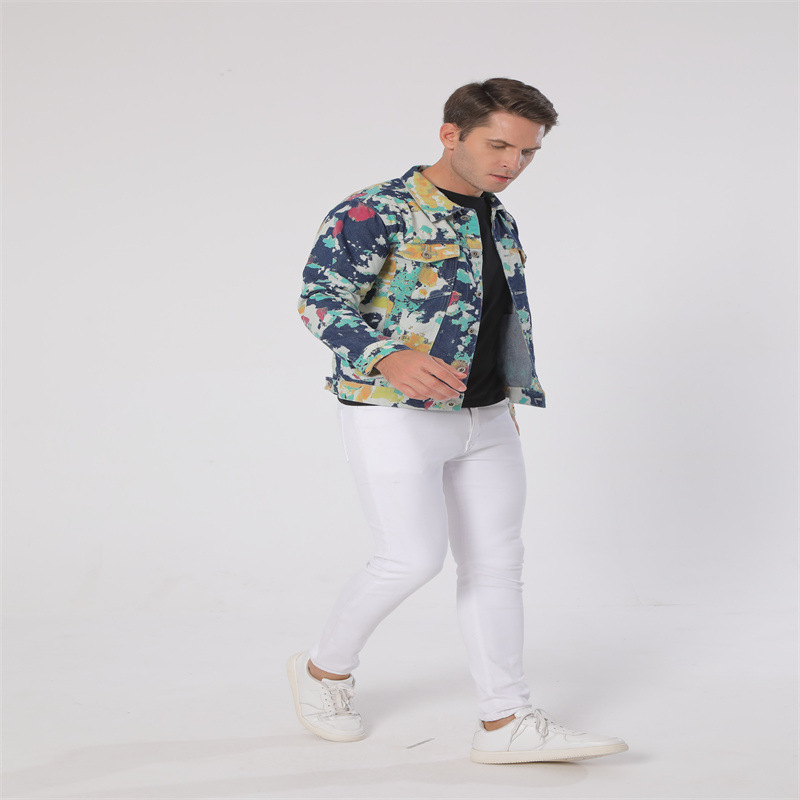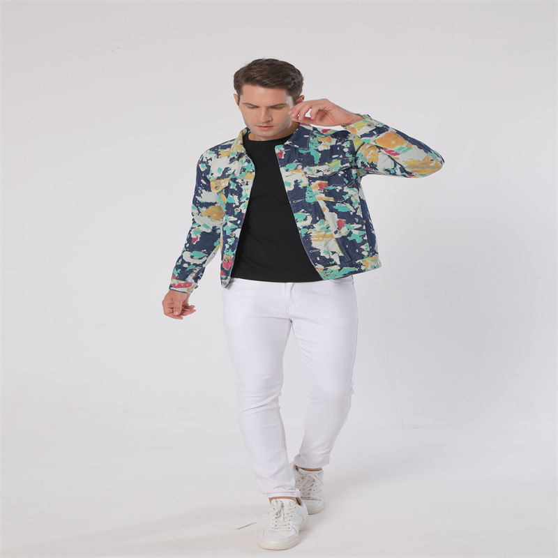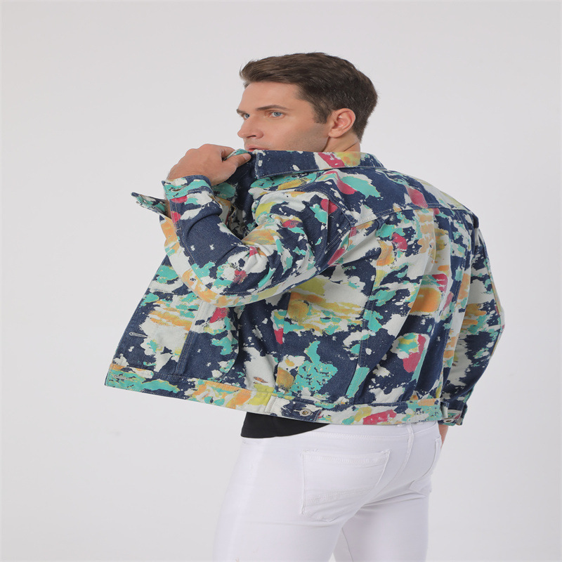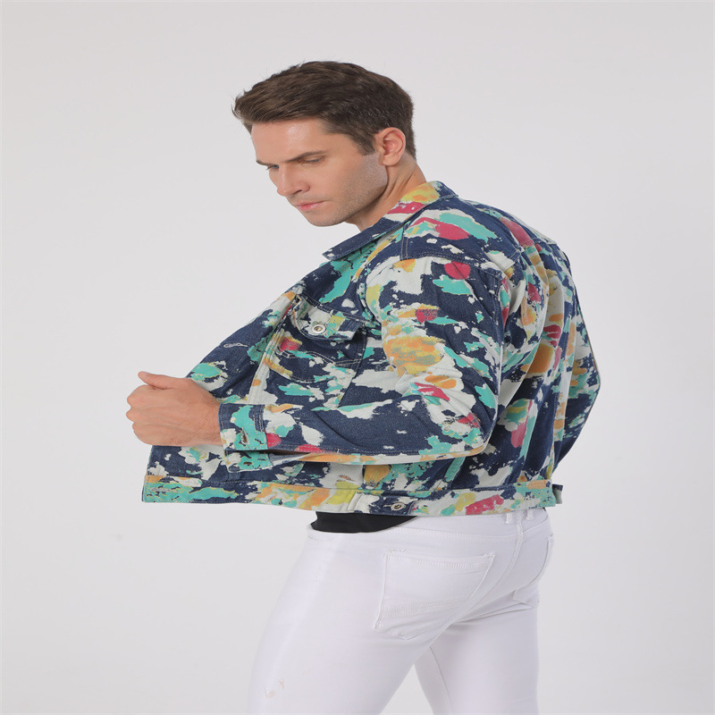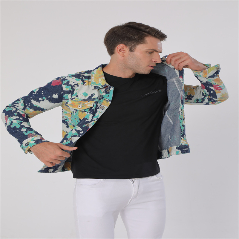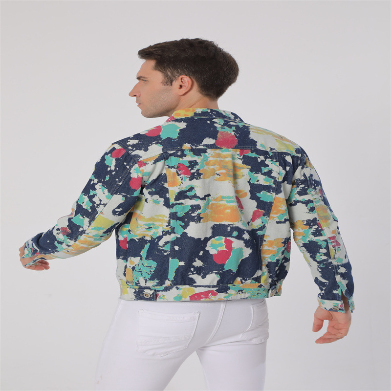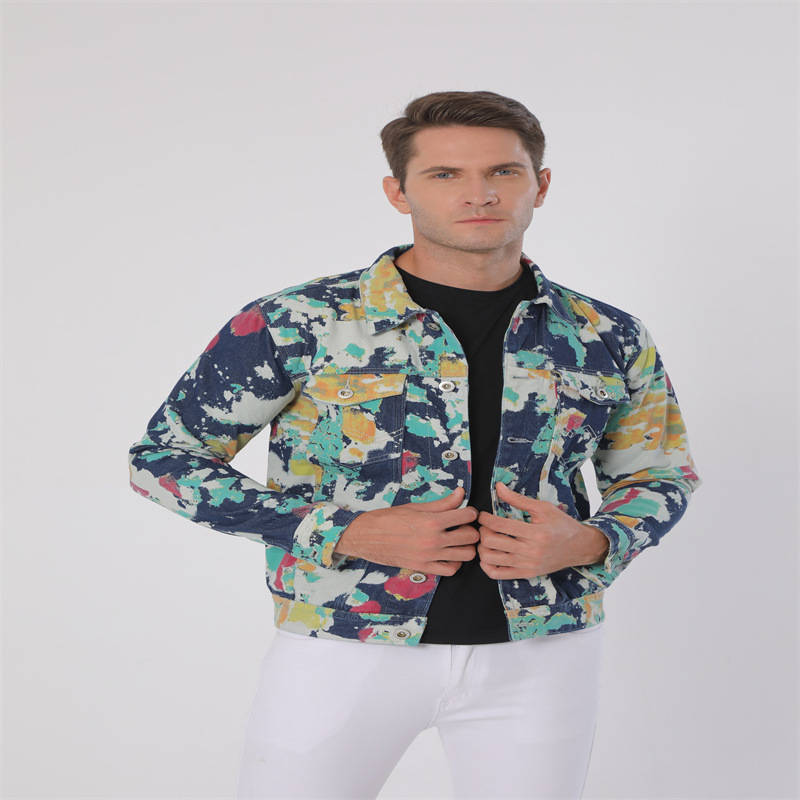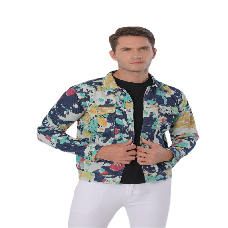 Lapel Denim Camouflage Hand-painted Floral Cloth Long Sleeve Non-elastic Denim Coat Jacket