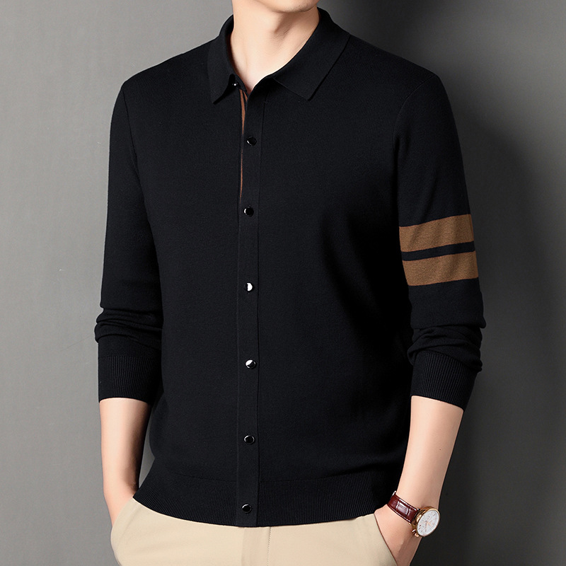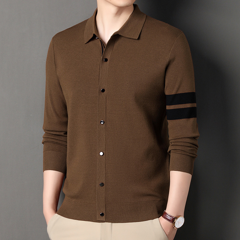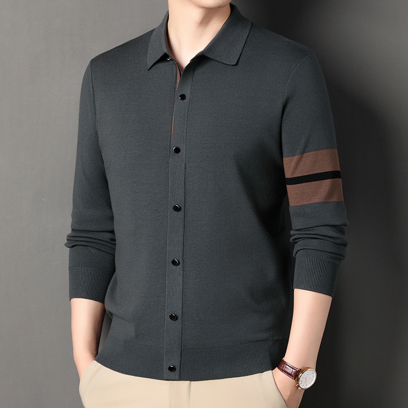 Lapel Long-sleeve Cardigan Sweater Men's Coat
