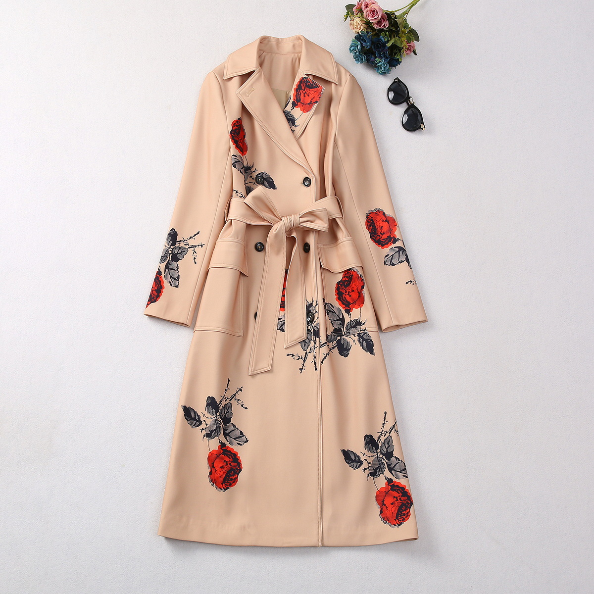Lapel Three-grain Double-breasted Belt Long Trench Coat
