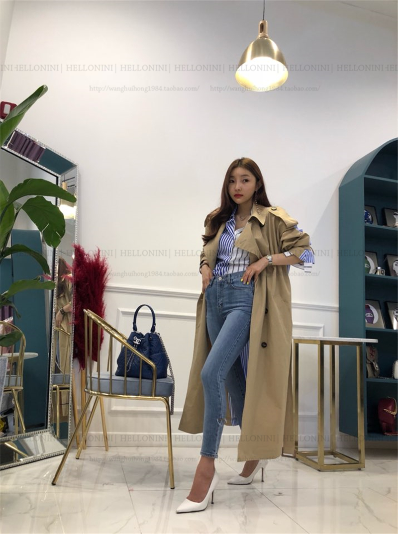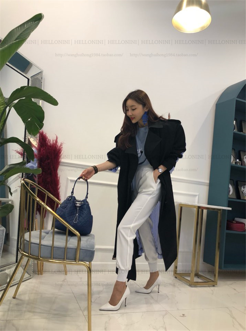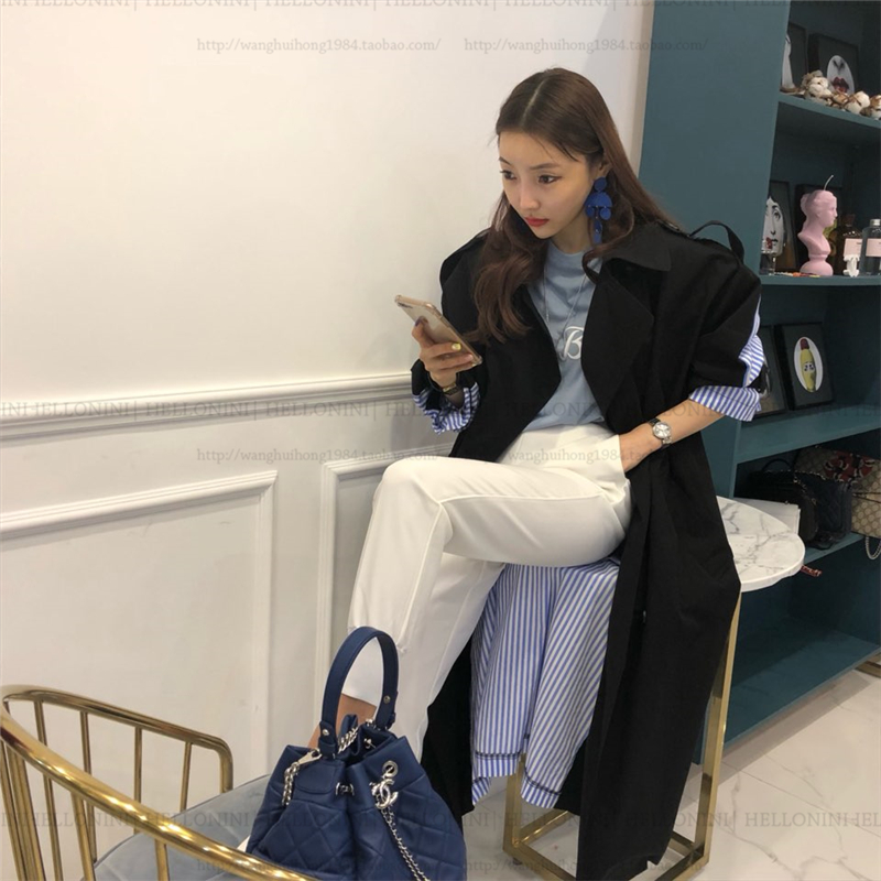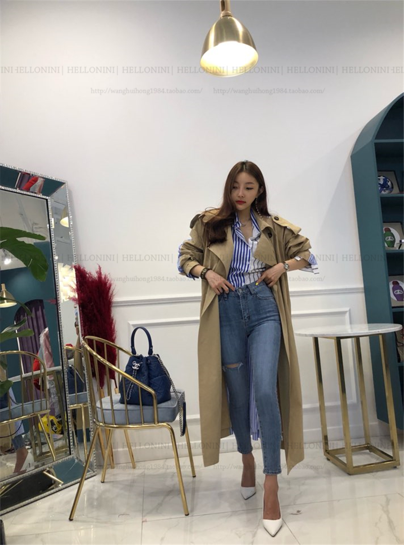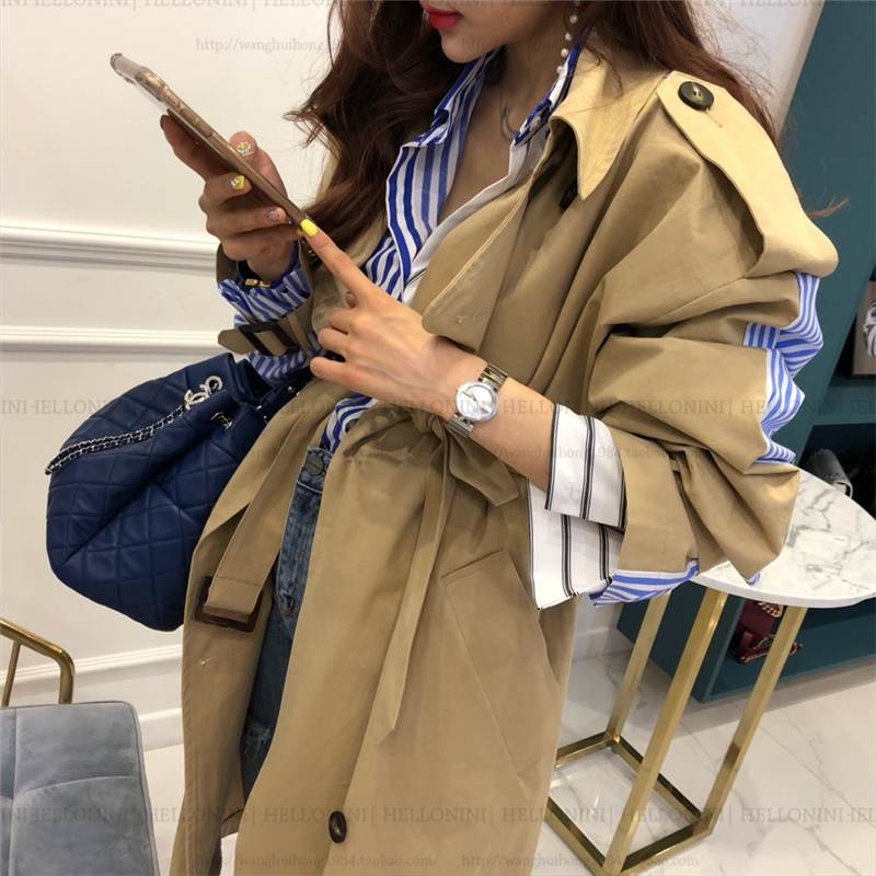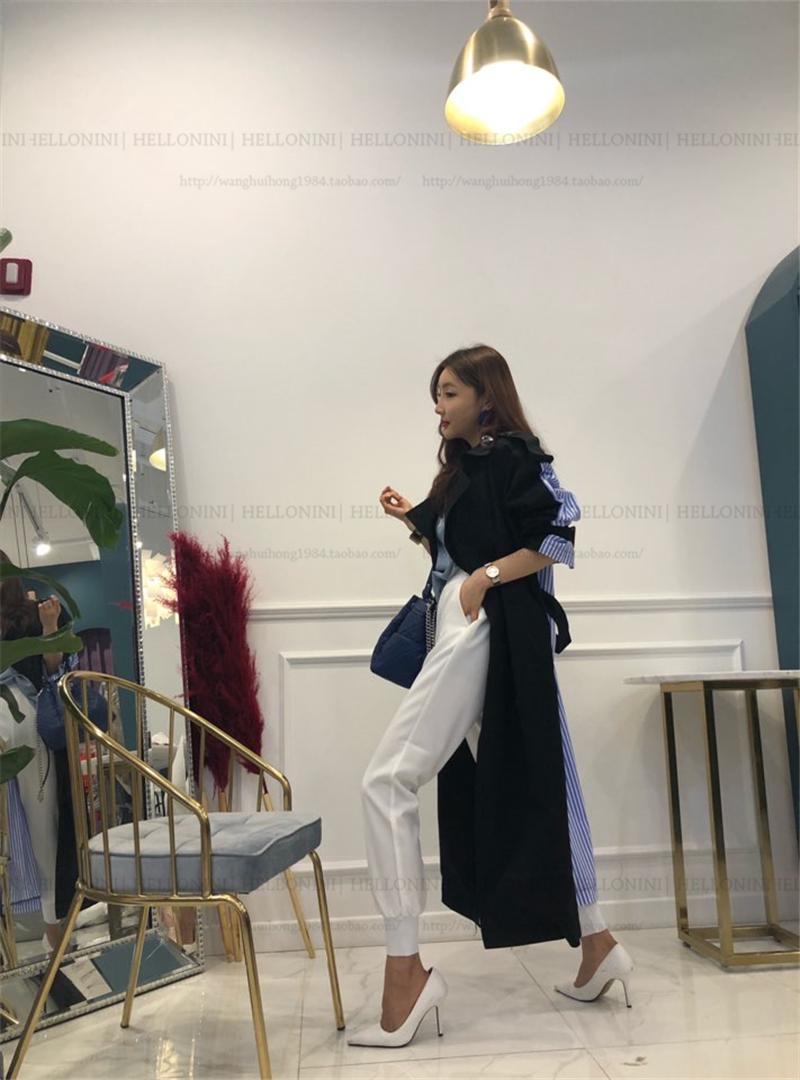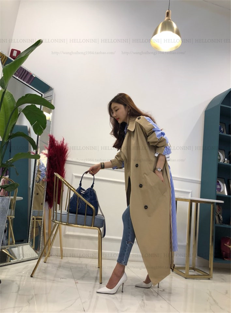 Lapel tie striped trench coat