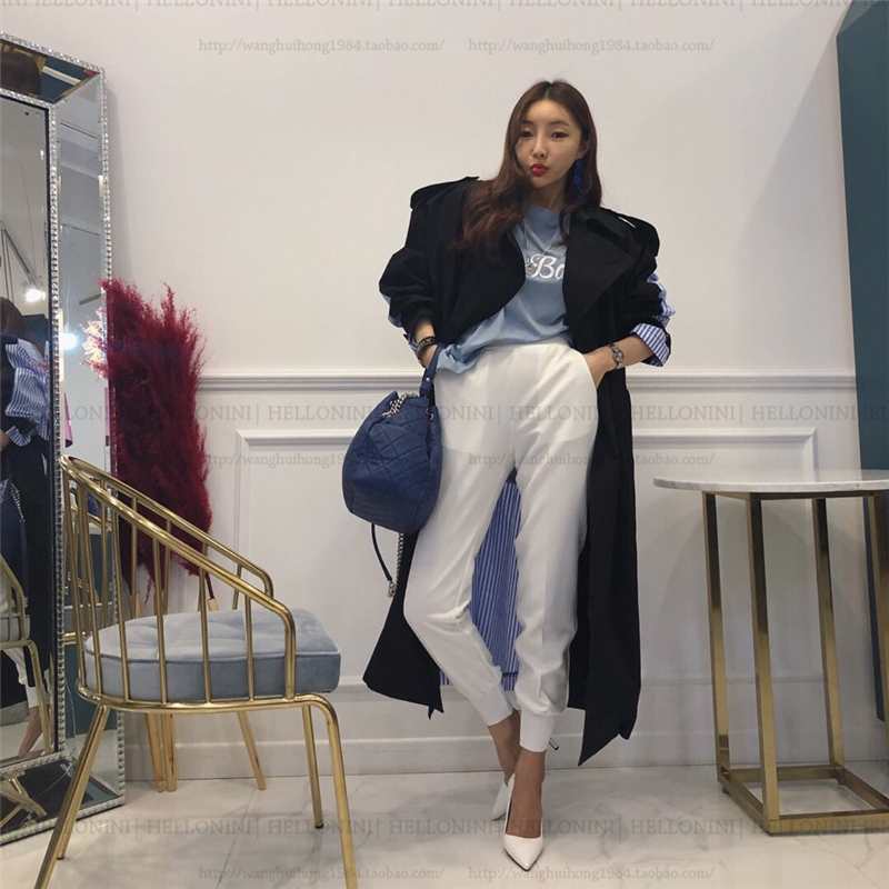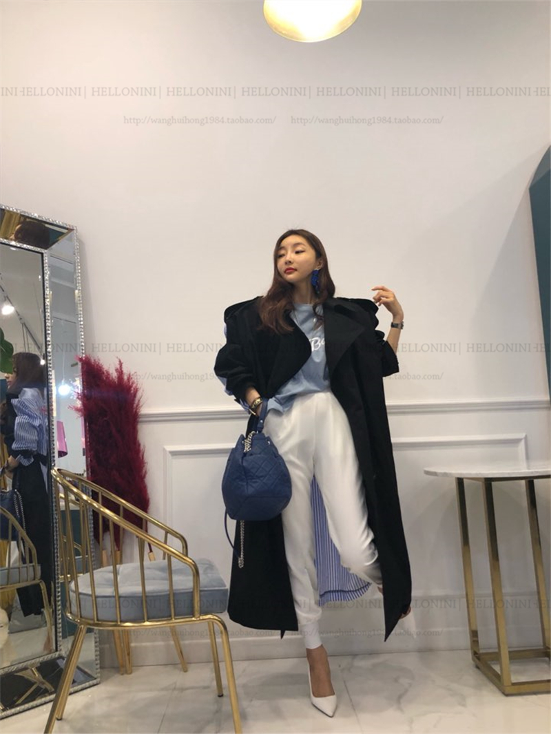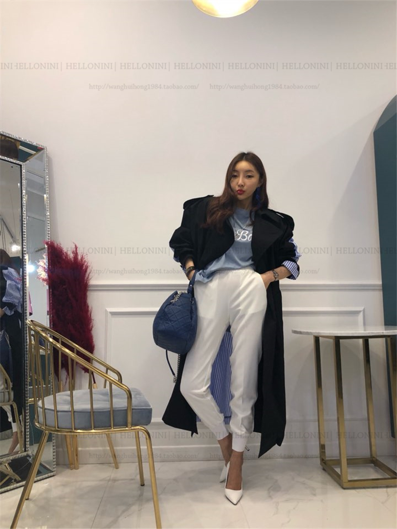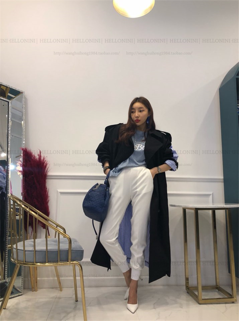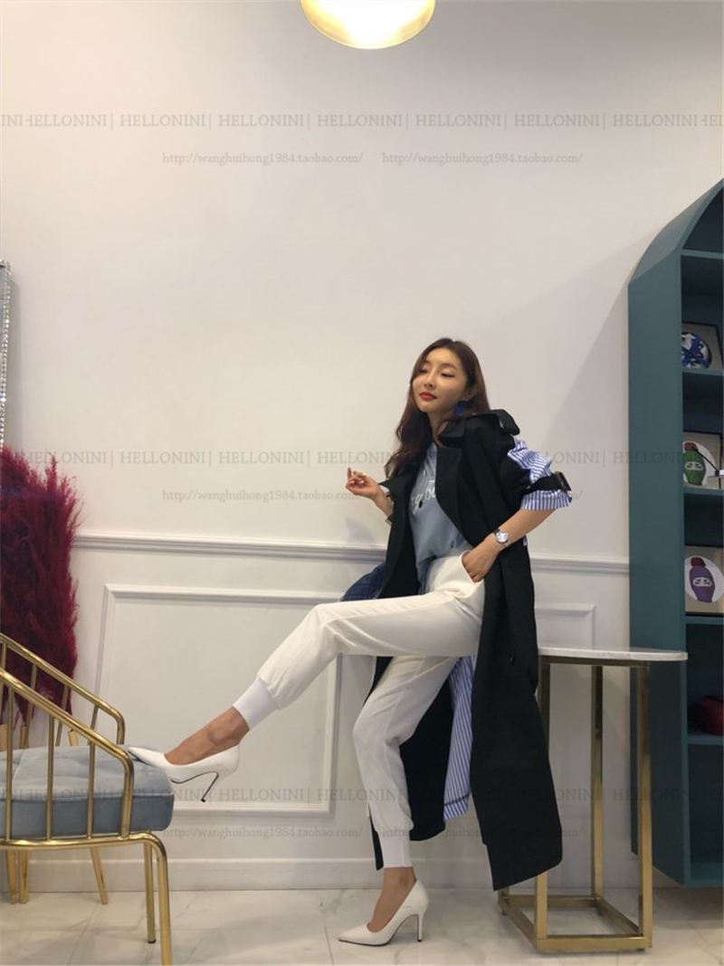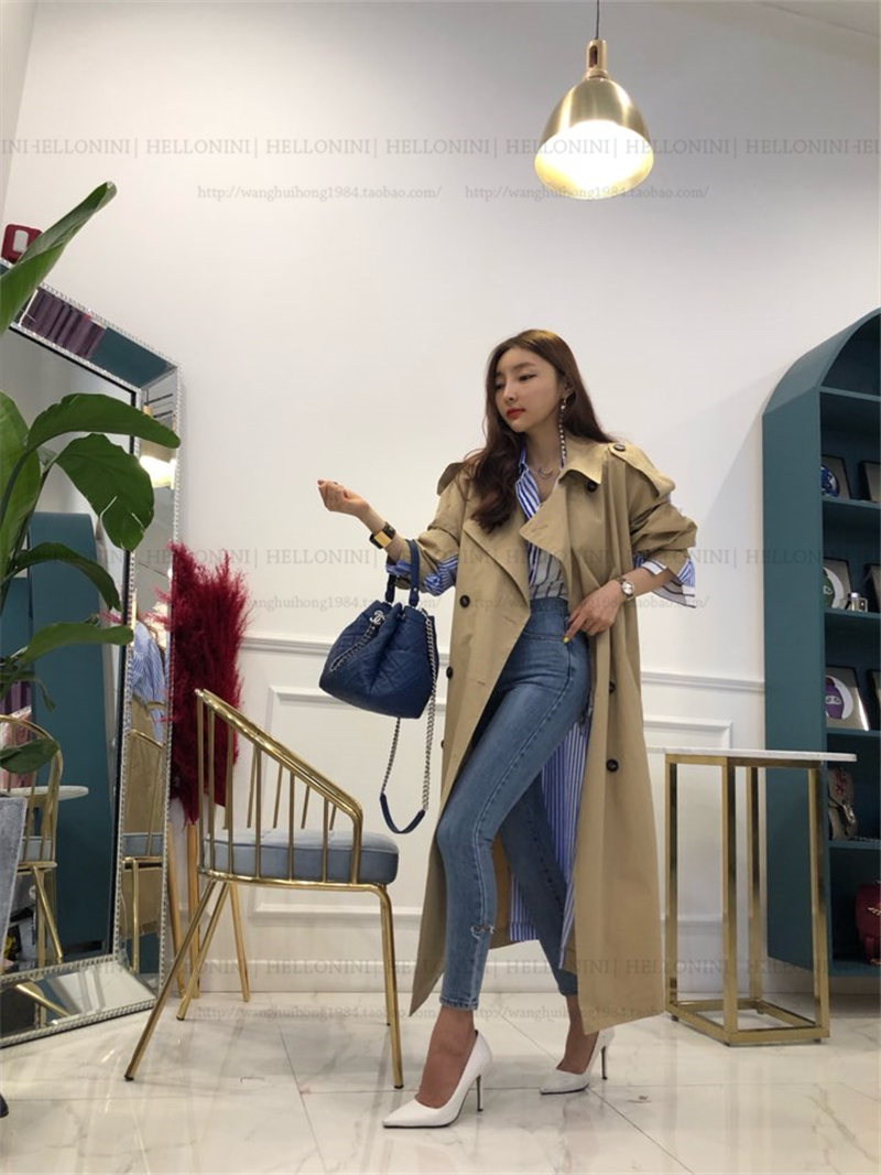 Lapel tie striped trench coat