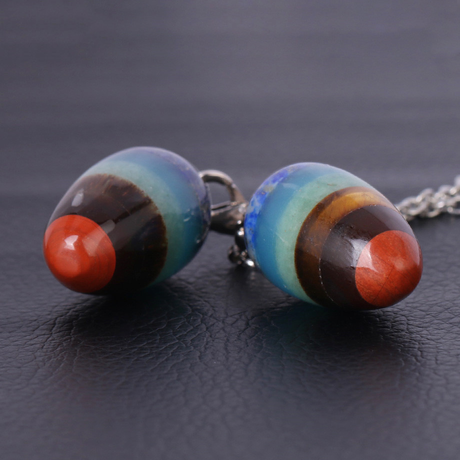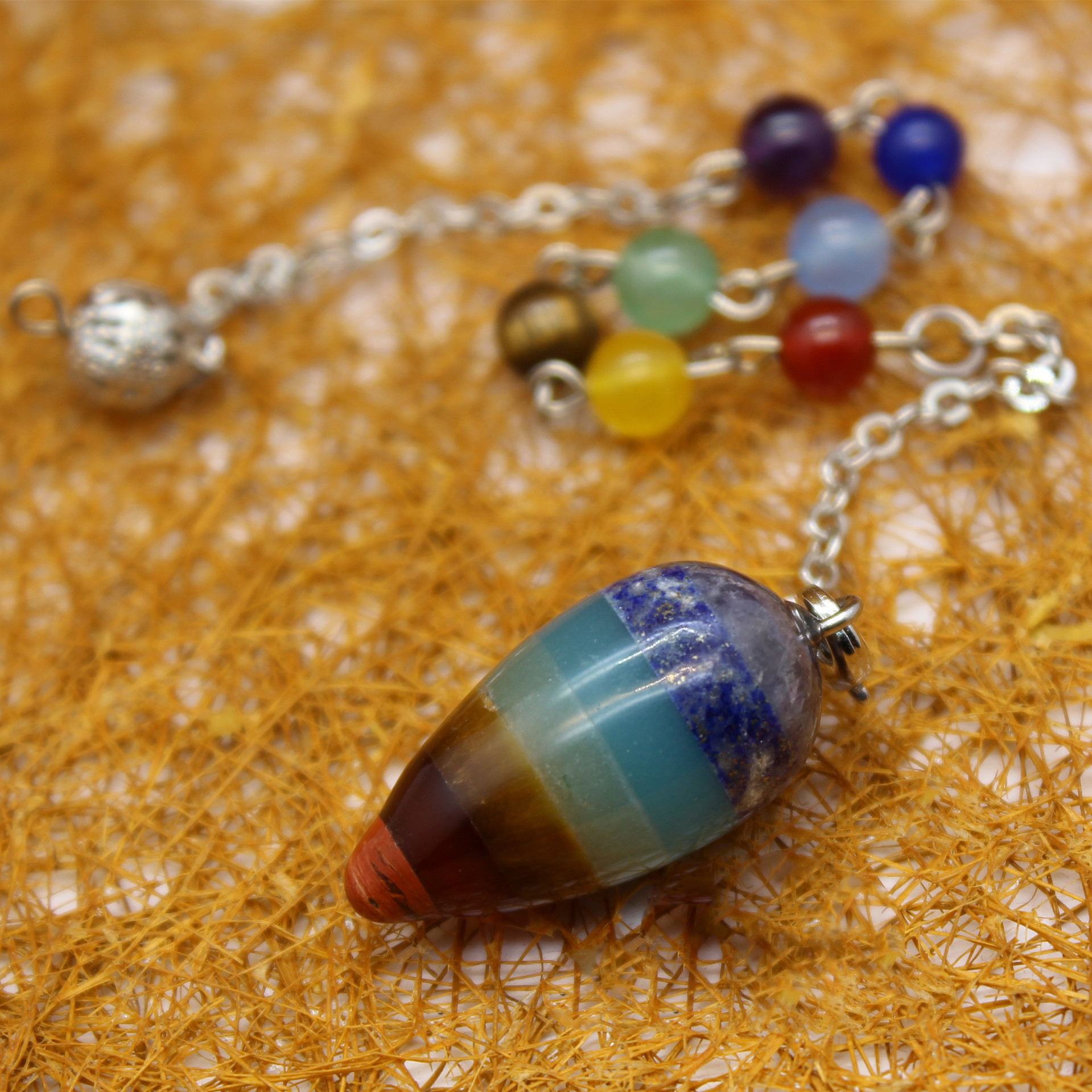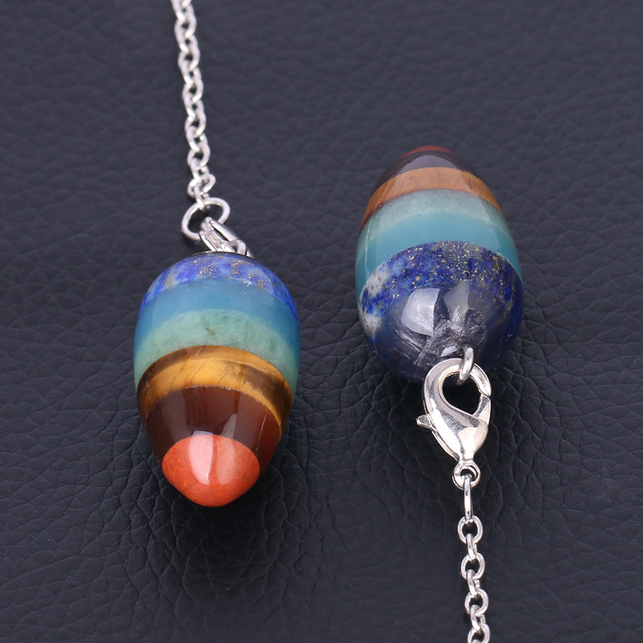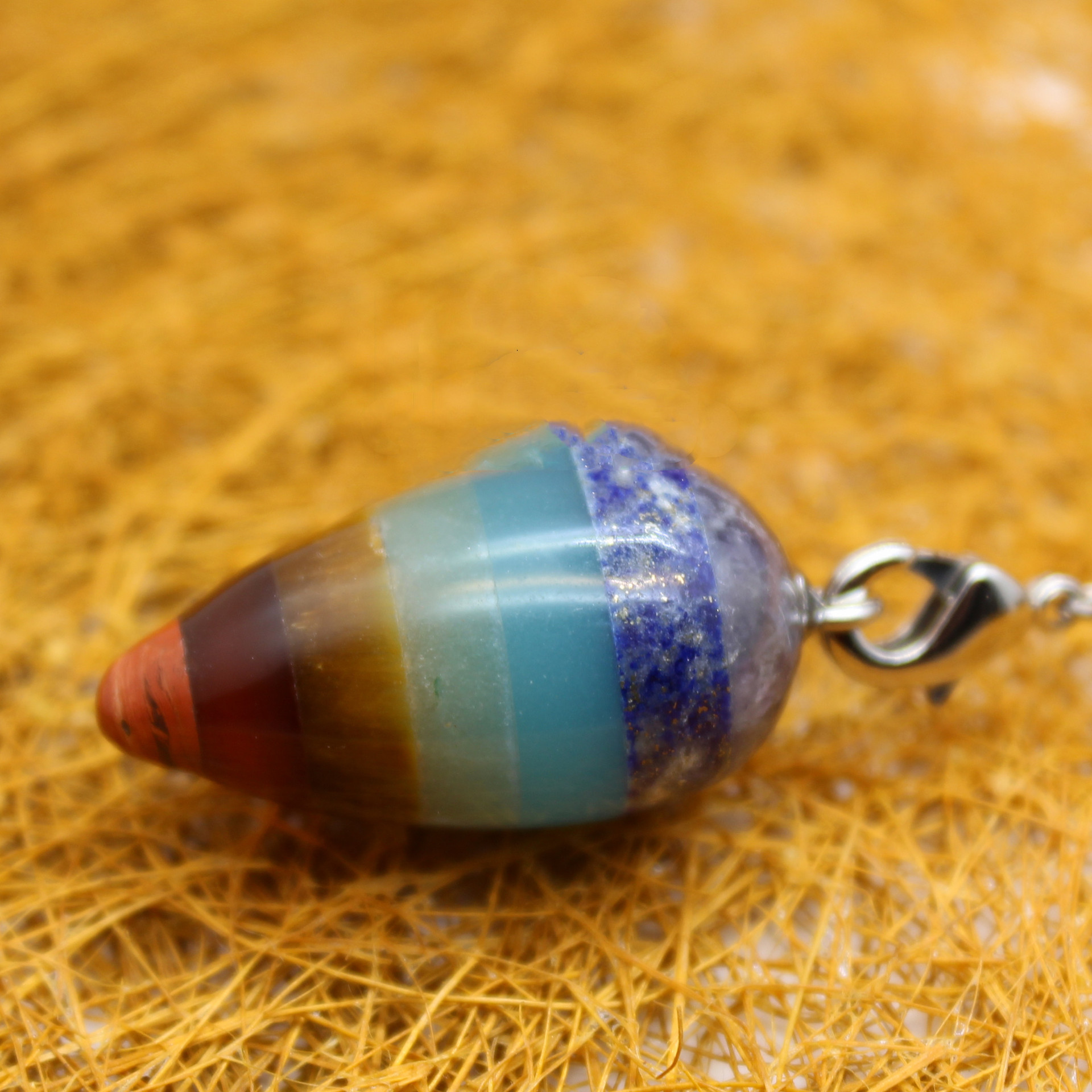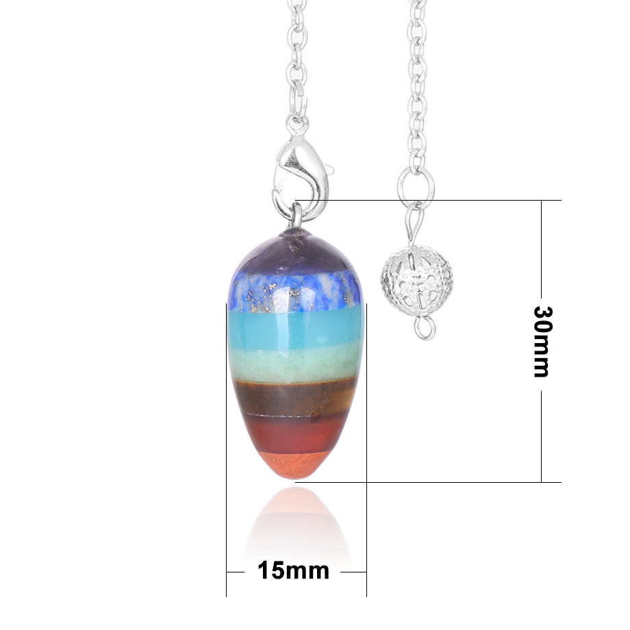 Color: A: Seven Chakra Pendulum Pendant, B: Seven Chakra Pendulum with Seven Color Chain, C: Seven Chakra Pendulum with Copper Bead Chain