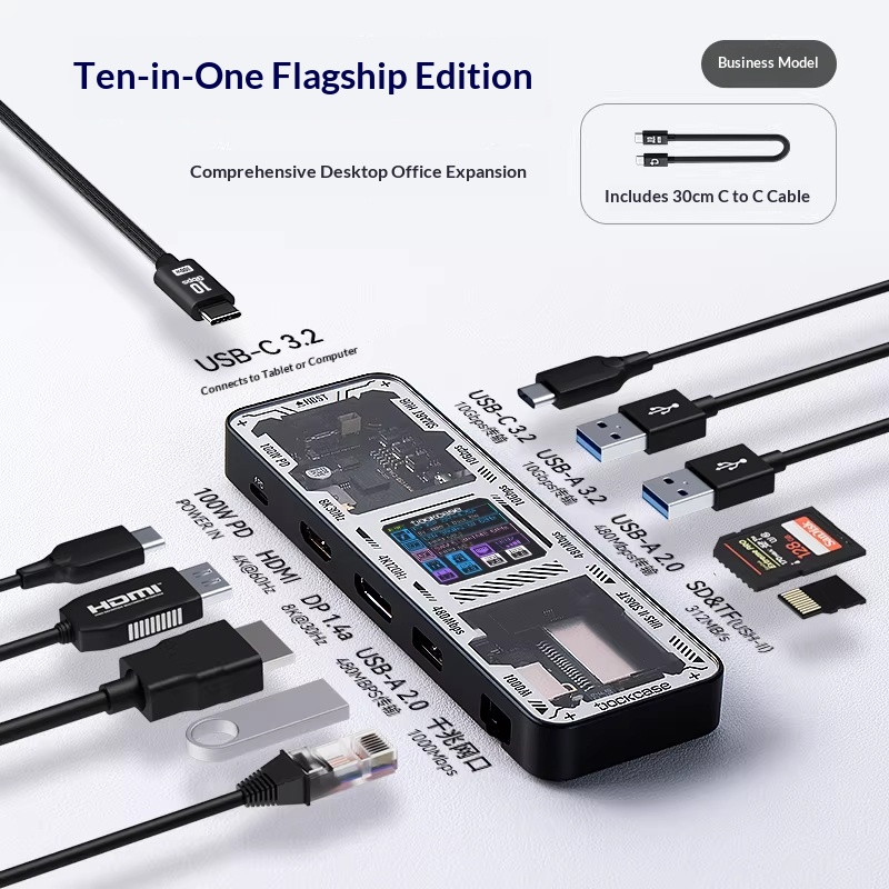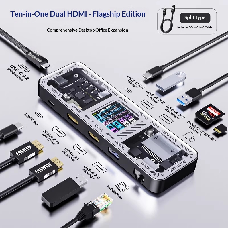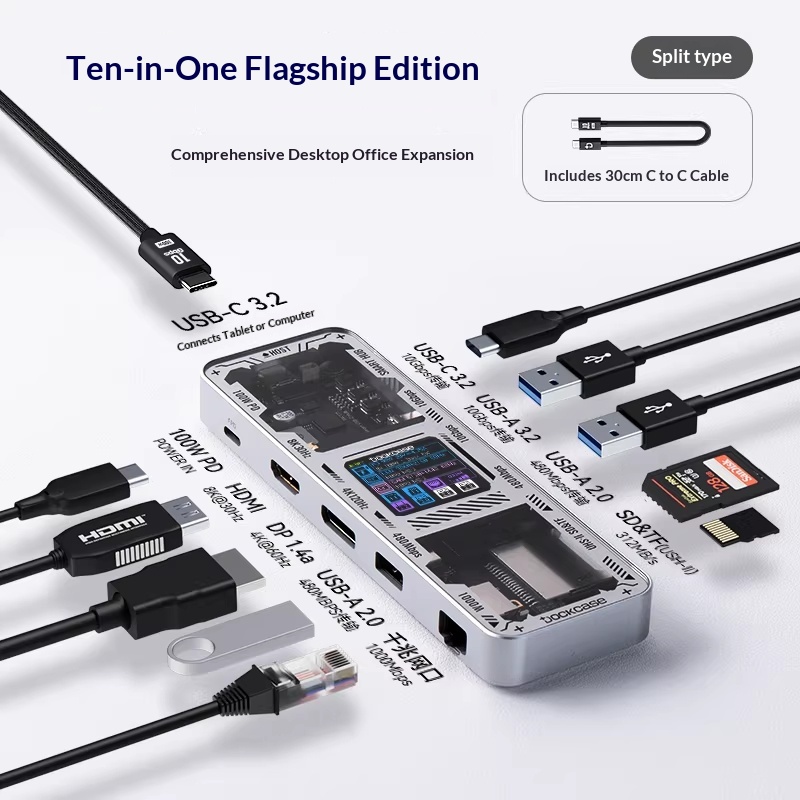 Color Options: [10-in-1 Flagship Model] Space Gray; [10-in-1 Flagship Model – Deep Space Black] HDMI + DP + 100W Power Delivery + Type-C + 3x USB-A + SD & TF Card Slots + Gigabit Ethernet Port; [10-in-1 Flagship Model – Aurora Silver] HDMI + DP + 100W Power Delivery + Type-C + 3x USB-A + SD & TF Card Slots + Gigabit Ethernet Port; [10-in-1 Dual HDMI Model – Deep Space Black] 2x HDMI + 100W Power Delivery + Type-C + 3x USB-A + SD & TF Card Slots + Gigabit Ethernet Port; [10-in-1 Dual HDMI Model – Aurora Silver] 2x HDMI + 100W Power Delivery + Type-C + 3x USB-A + SD & TF Card Slots + Gigabit Ethernet Port