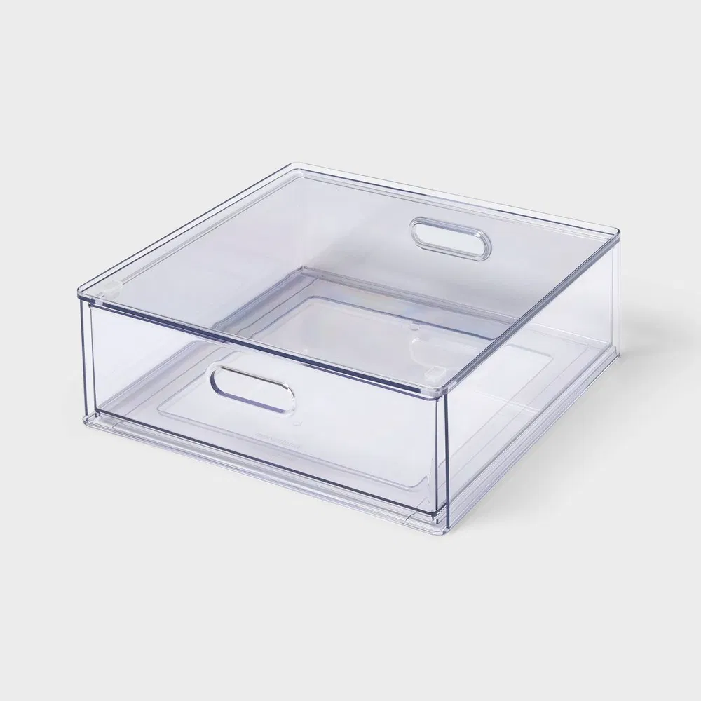 Large all-purpose full depth drawer Transparent design Removable lid Side cutouts