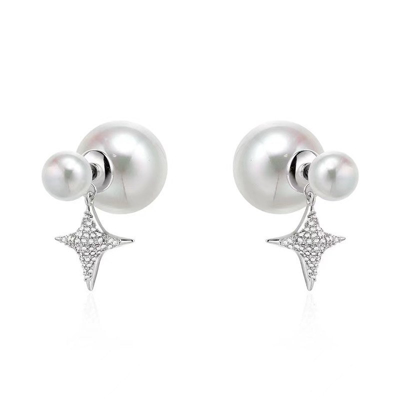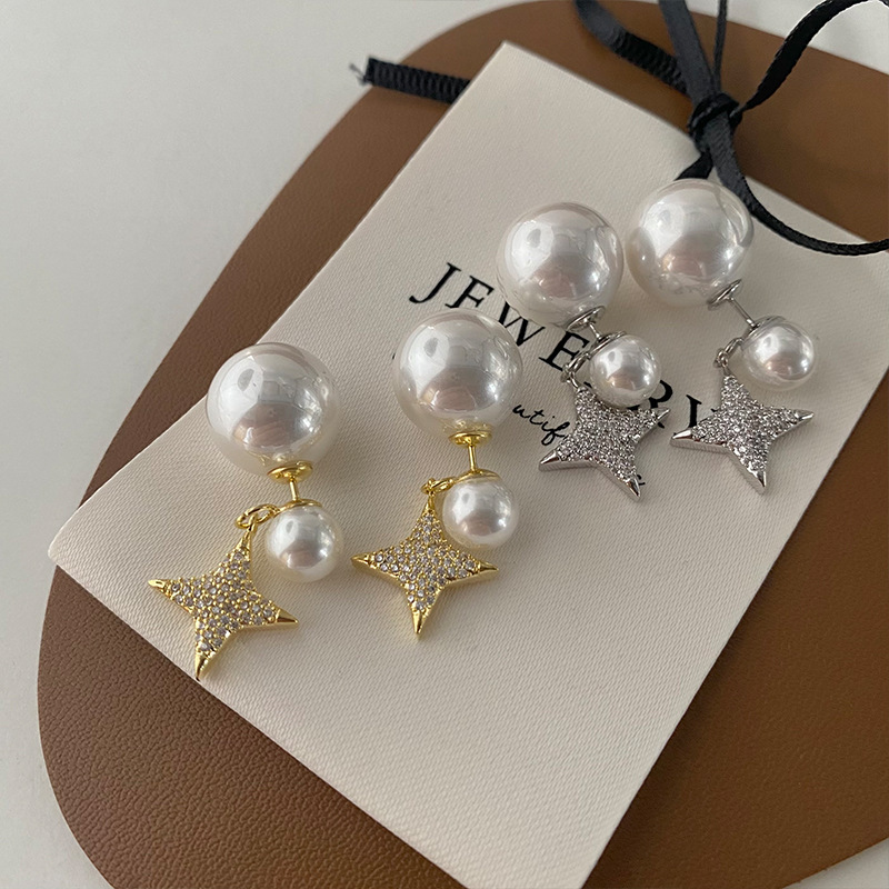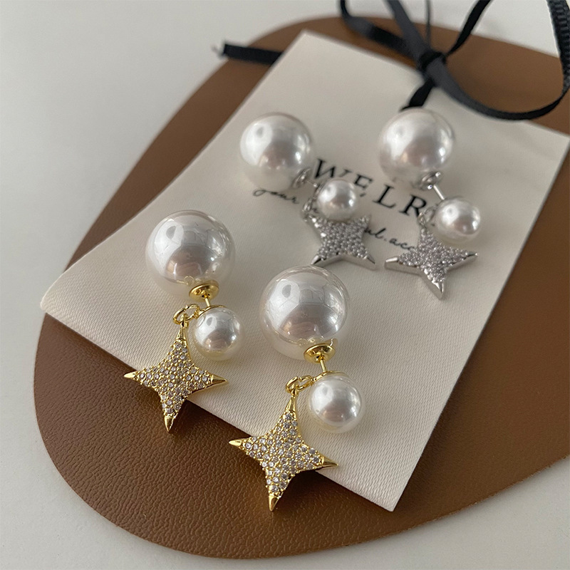 Color: gold large and small pearls octagonal earrings-gold plated, silver large and small pearls octagonal earrings-gold plated