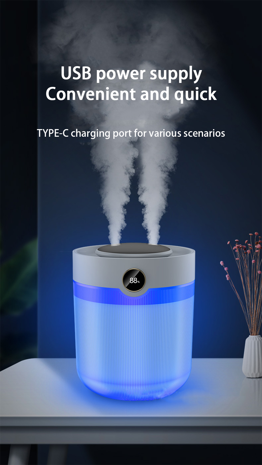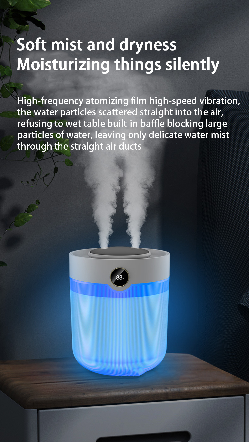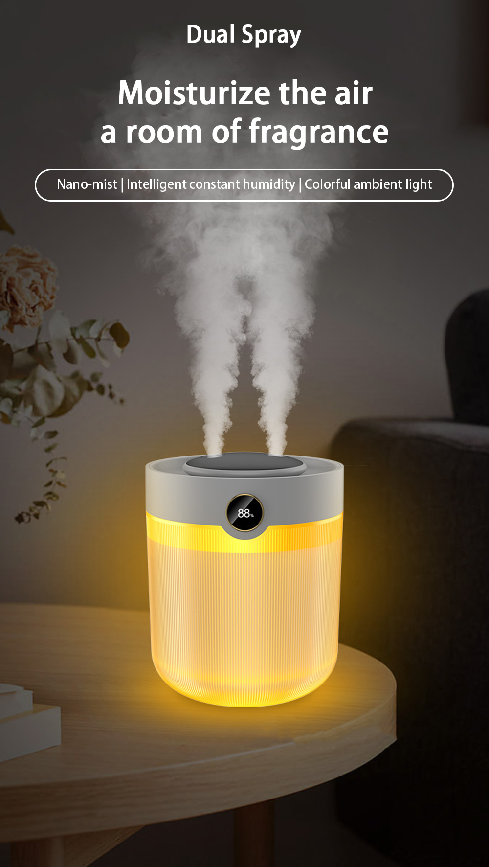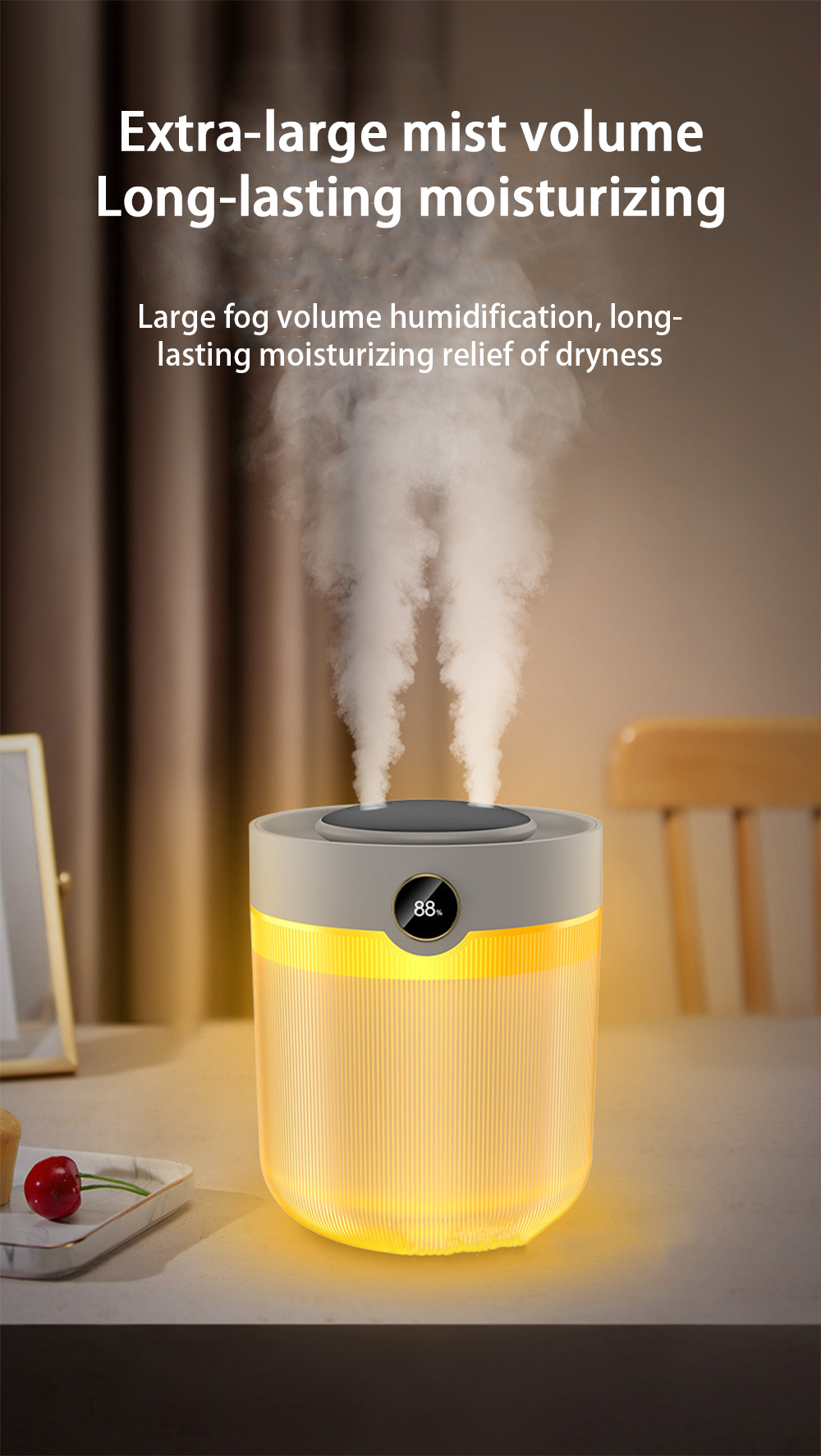 Digital display, double spray, silent operation, the 2L large capacity humidifier keeps your indoor space comfortably humid.