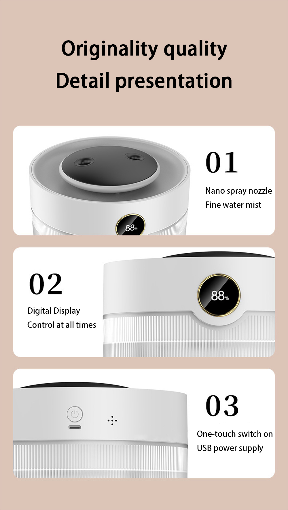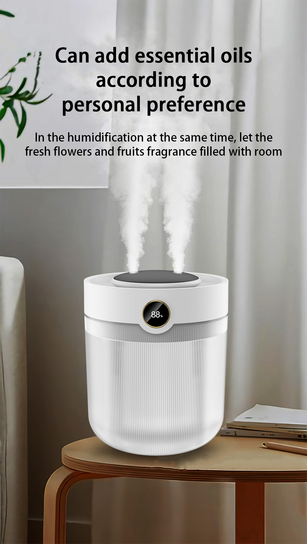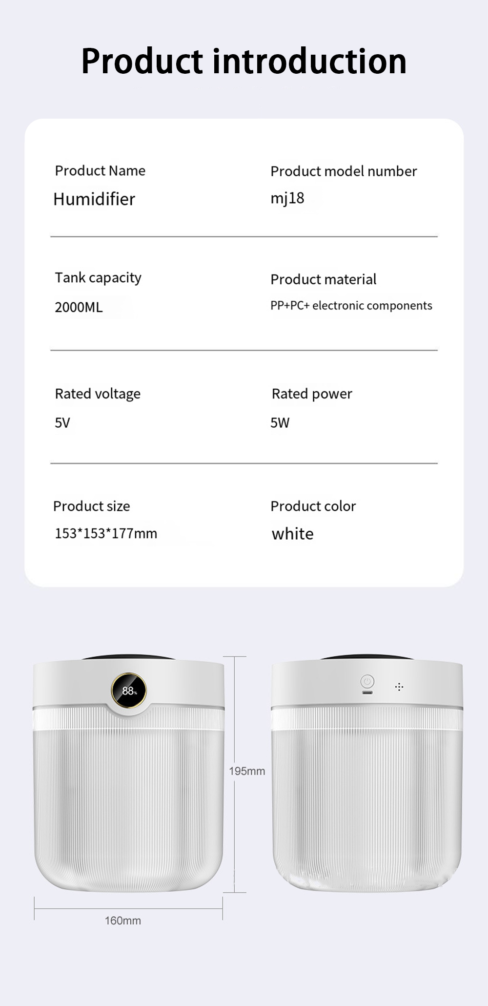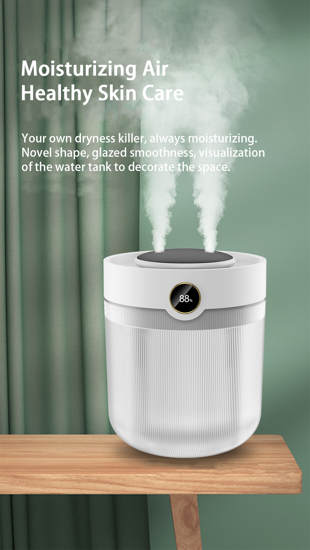 Digital display, double spray, silent operation, the 2L large capacity humidifier keeps your indoor space comfortably humid.