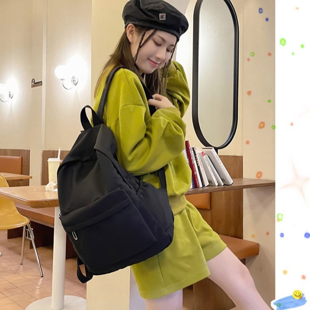 Color: black, white, blue, orange, green, purple, pink