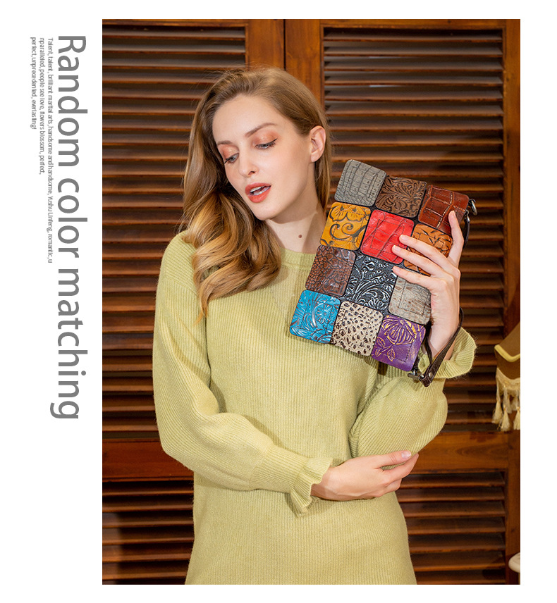 Large-capacity Cowhide Evening Party Stitching Shoulder Bag