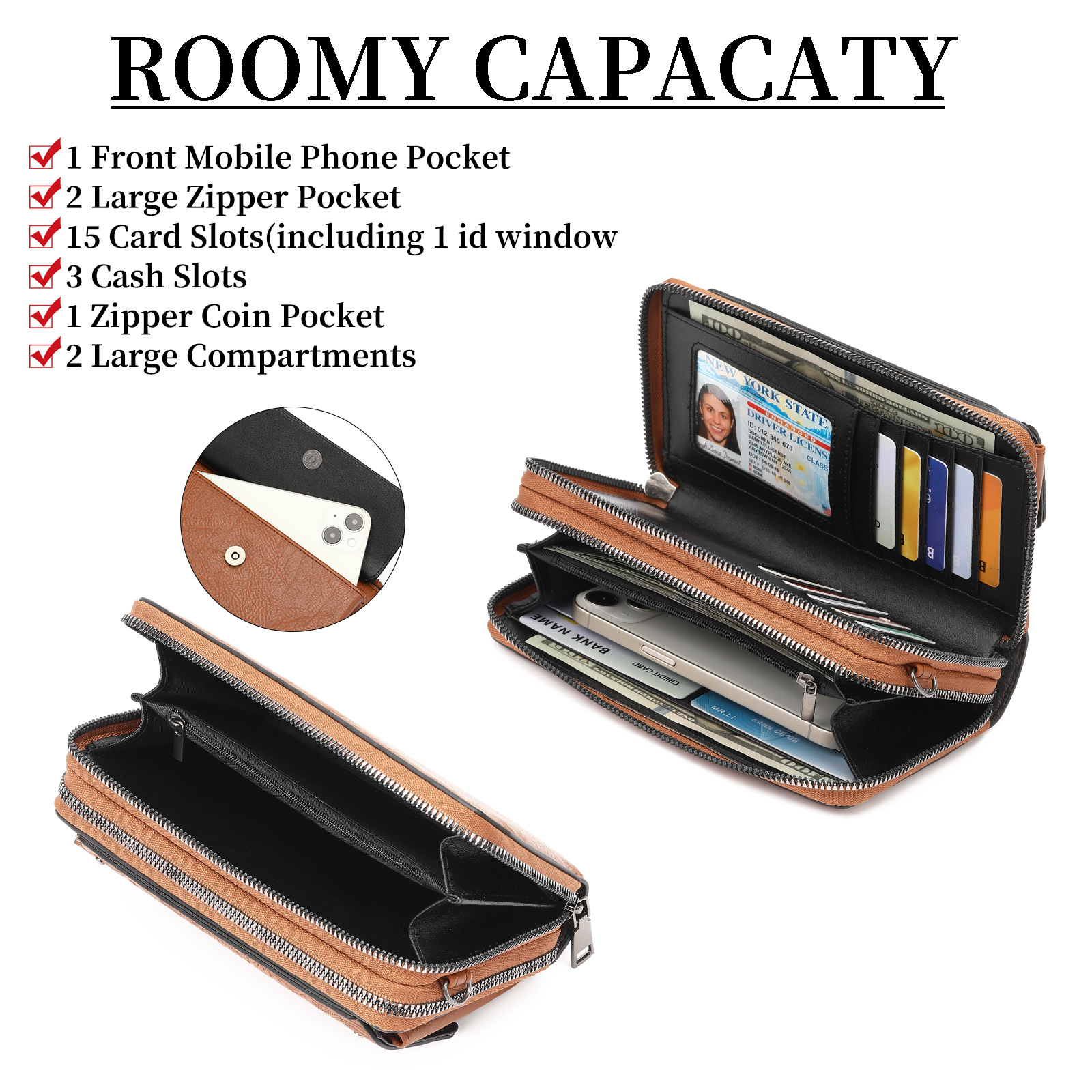 Small bag internal structure: large bill compartment