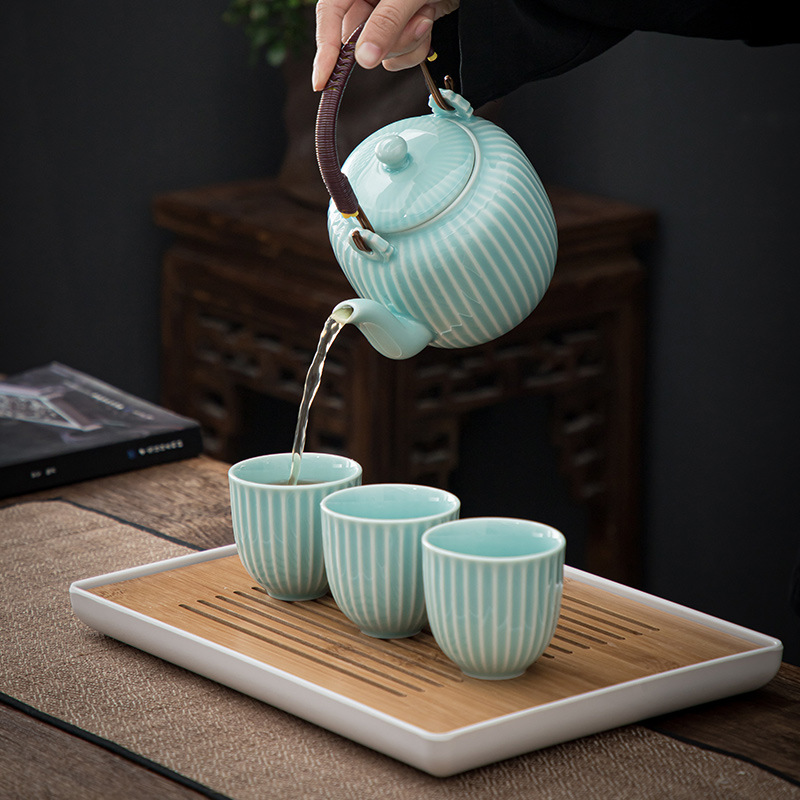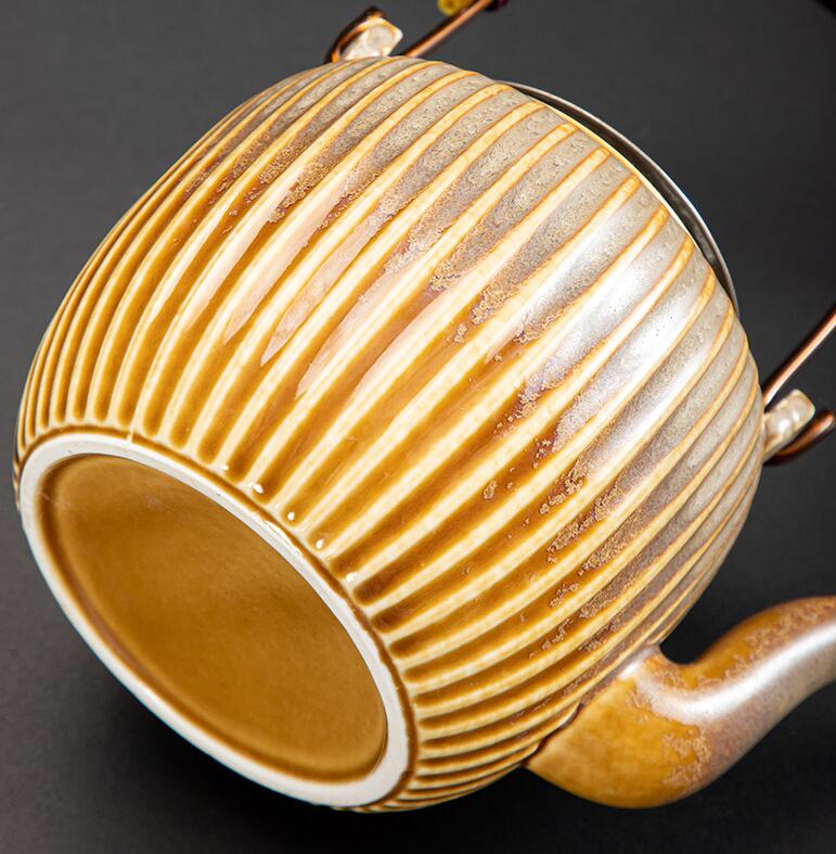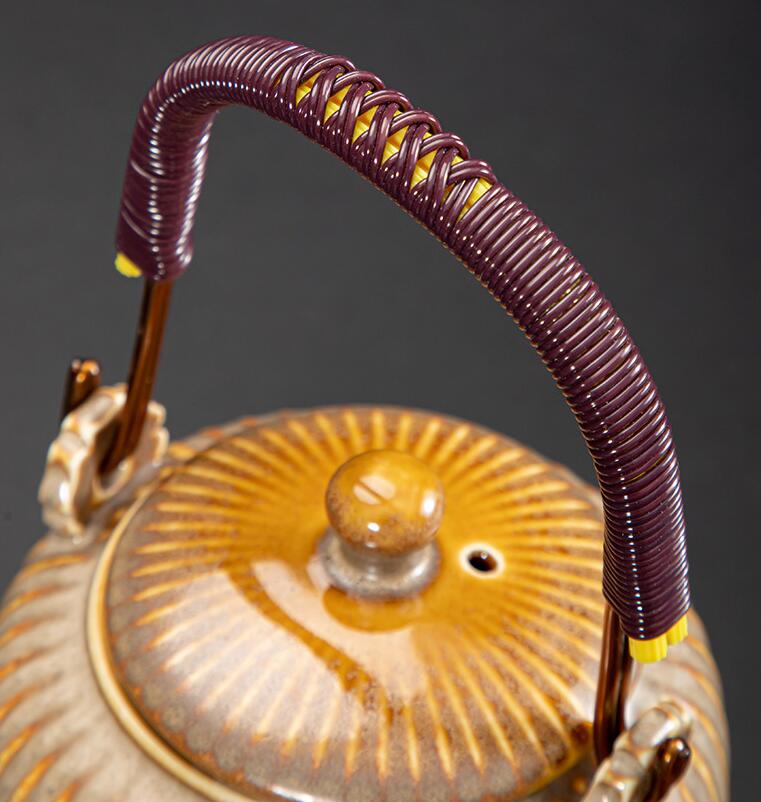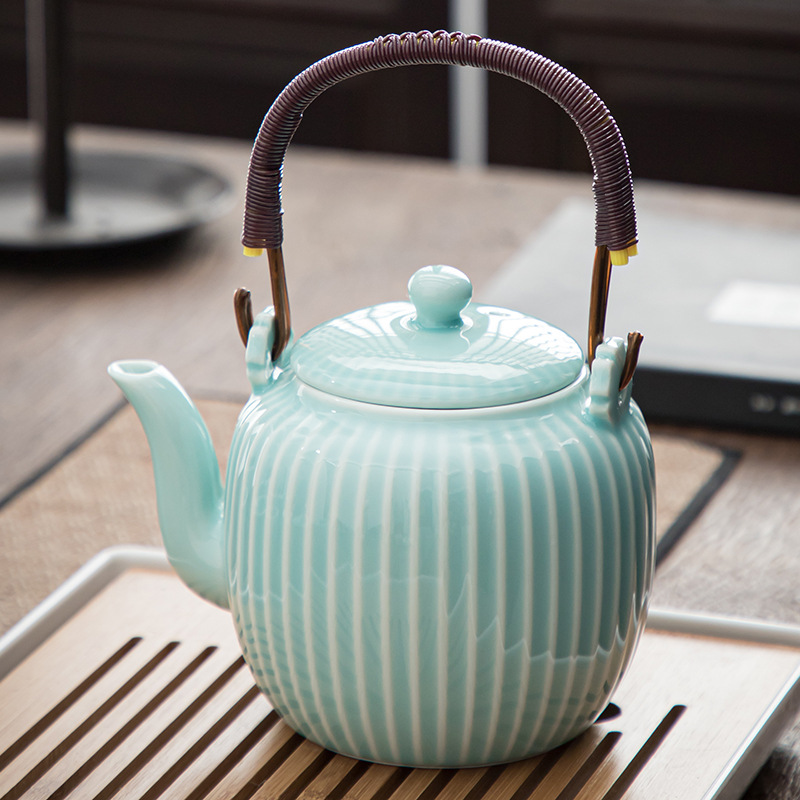 Color: celadon rib ring-handle teapot, cobalt blue rib ring-handle teapot, yellow rib ring-handle teapot