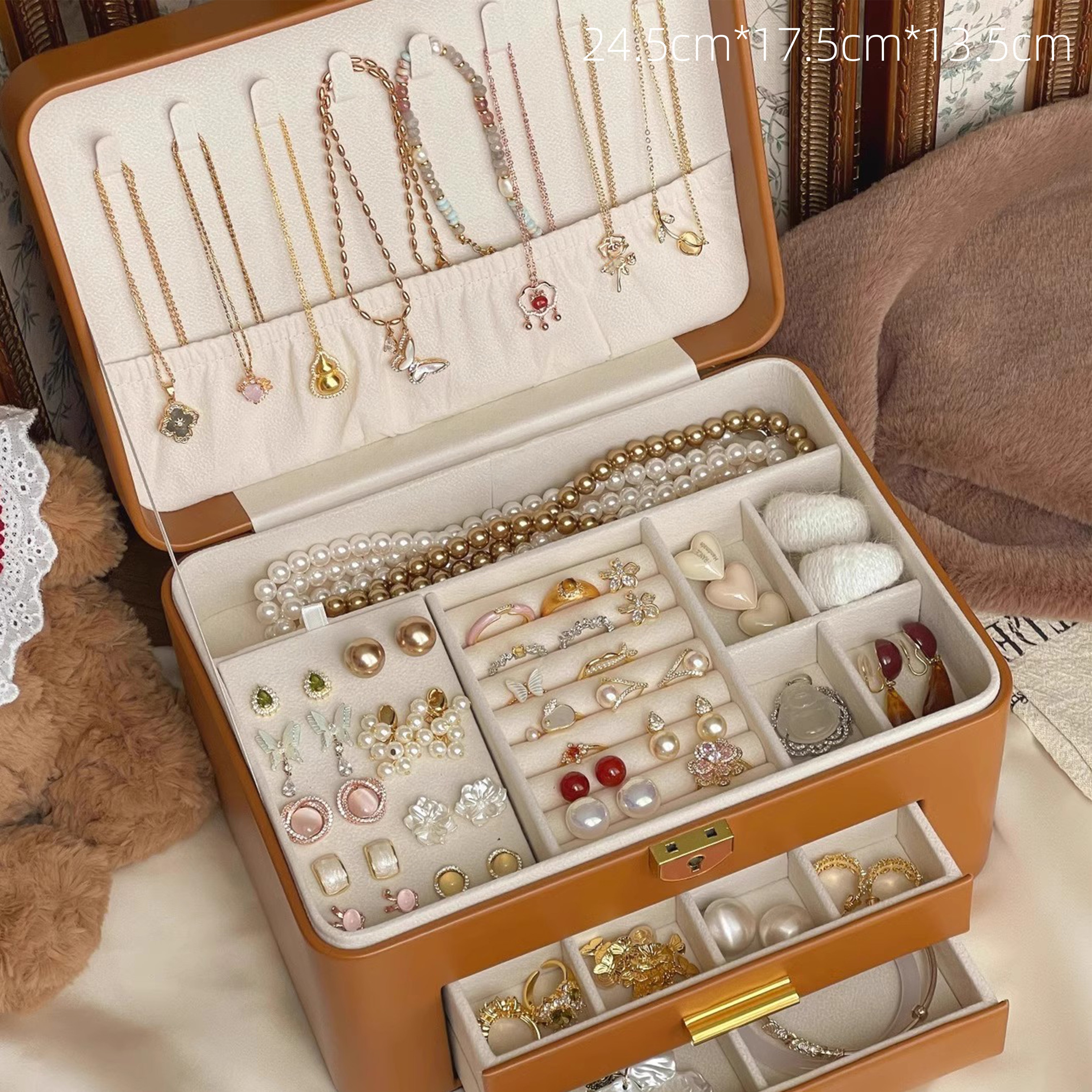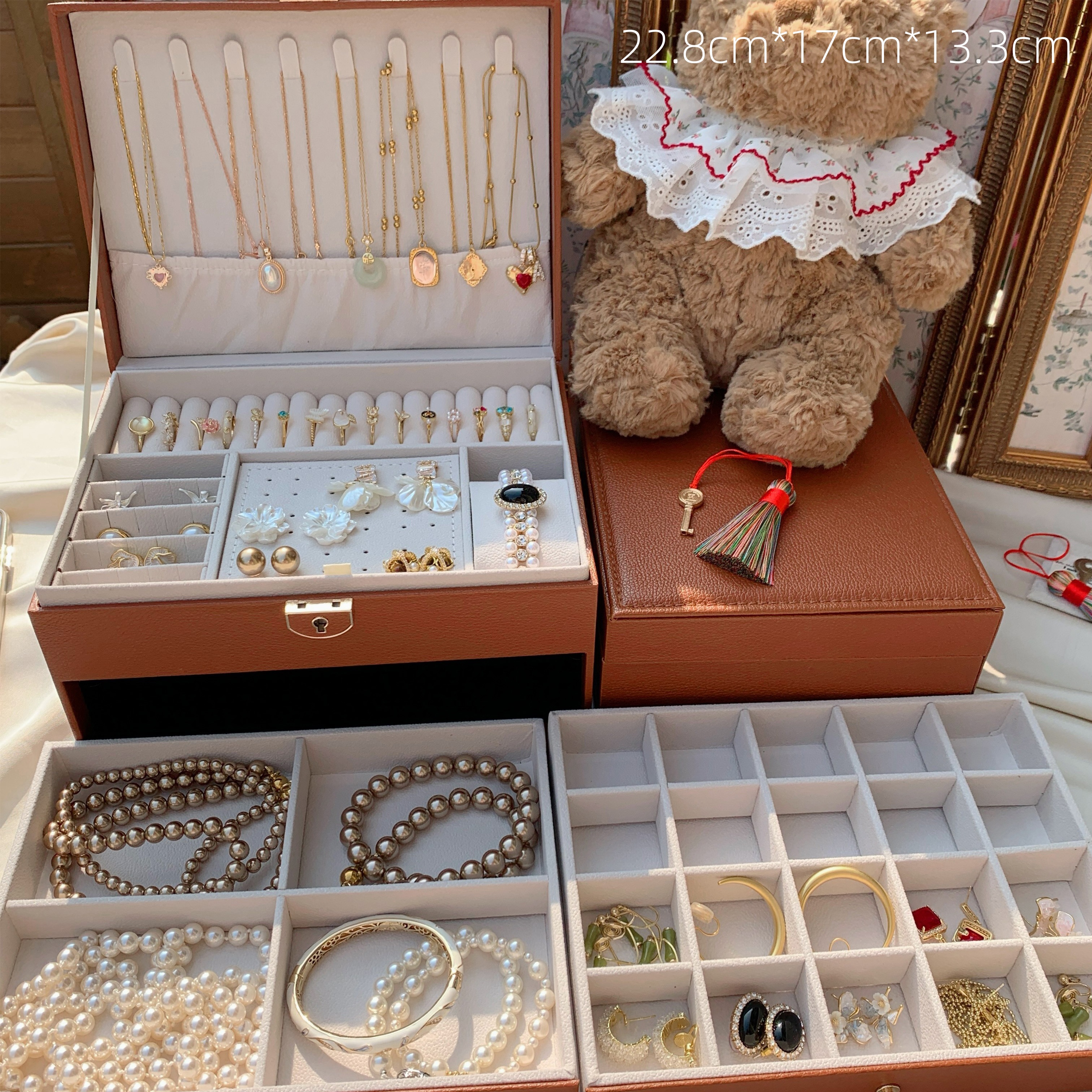 Color:One Maillard Medium Jewelry Box, One Square Treasure Box Medium Zipper Jewelry Box, One Aishen Box Medium Three-layer Jewelry Box, One Treasure Box Three-layer Storage Jewelry Box, One Treasure Chest Double-layer Jewelry Box, One Large Double-layer Jewelry Box, One Large Three-layer Jewelry Box, One Large Treasure Chest Double-layer Jewelry Box, And One Large Three-layer Jewelry Box