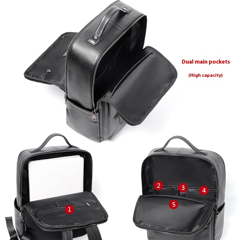 Large Capacity Men's Leather Computer Backpack
