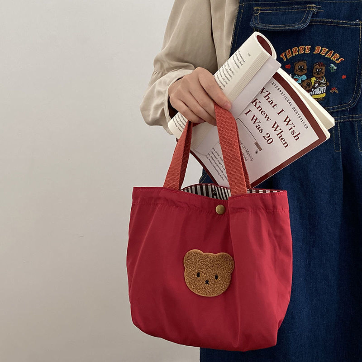 Color: Little Bear pink slippery small portable, Little Bear green slippery small portable, little bear red slippery small portable, dark green extra large (lunch box recommended), Pink extra large (lunch box recommended), dark blue plus size (lunch box recommended), yellow plus size (lunch box recommended), light green plus size (lunch box recommended), red plus size (lunch box recommended), light blue plus size (lunch box recommended), sky blue plus size (recommended lunch box), corduroy small handbag (snap button) light blue, corduroy small handbag (snap button) yellow, corduroy small handbag (snap button) light green, corduroy small handbag (snap button) dark green, corduroy small handbag (snap button) Pink, corduroy small handbag (snap button) red