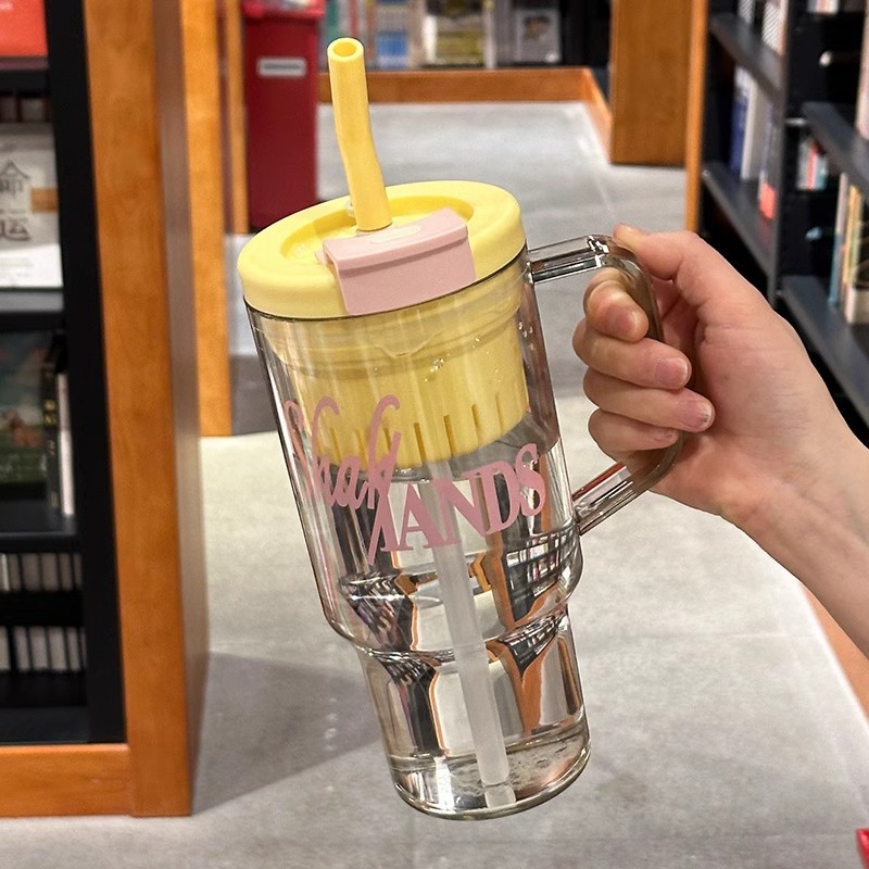 Color: double drink large ice cup blue handle, double drink large ice cup yellow handle, double drink large ice cup green handle, double drink large ice cup pink handle