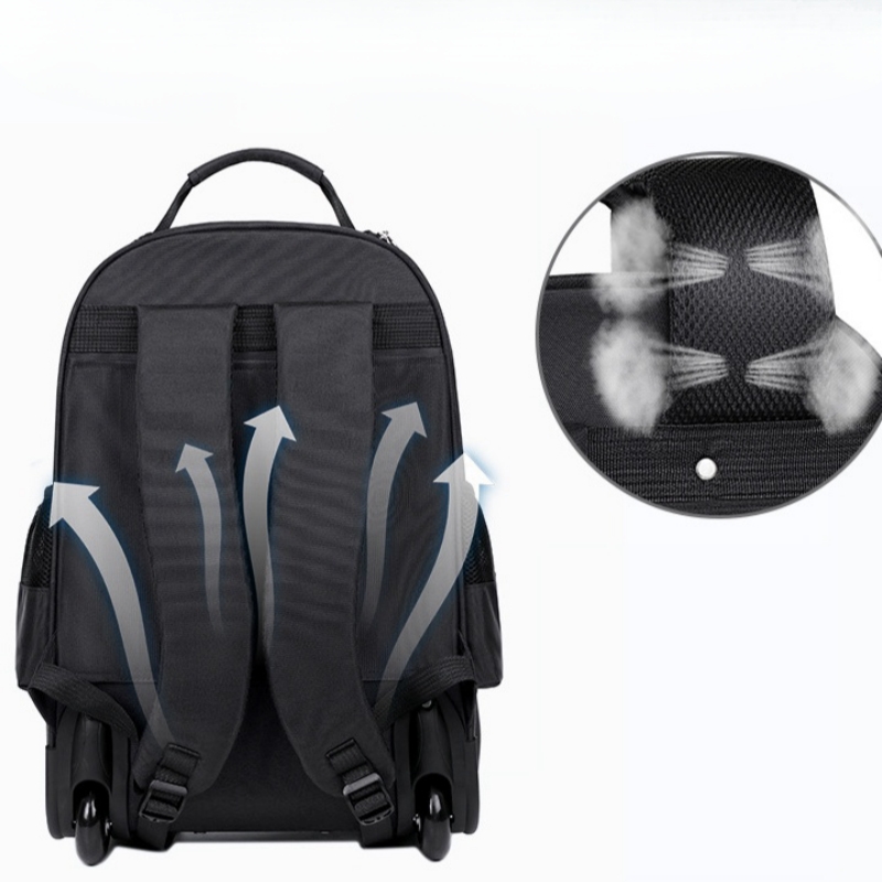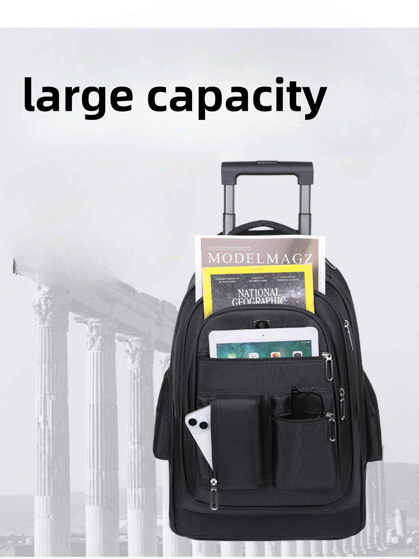 Large Capacity Travel Backpack With Wheels, Multi Layer Trolley Luggage Bag, Multifunctional Weekender Overnight Bag Rucksack