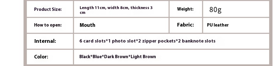 Large Capacity Tri-fold Bag Coin Bag Card Slots ID Card Wallet