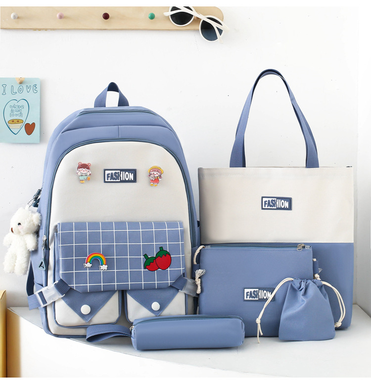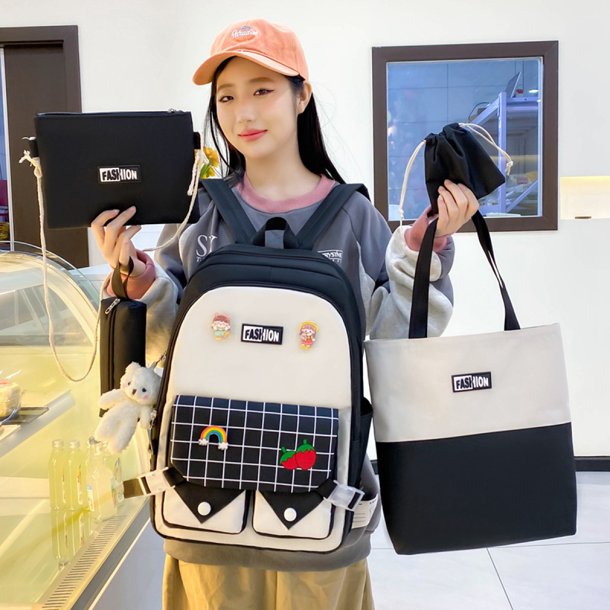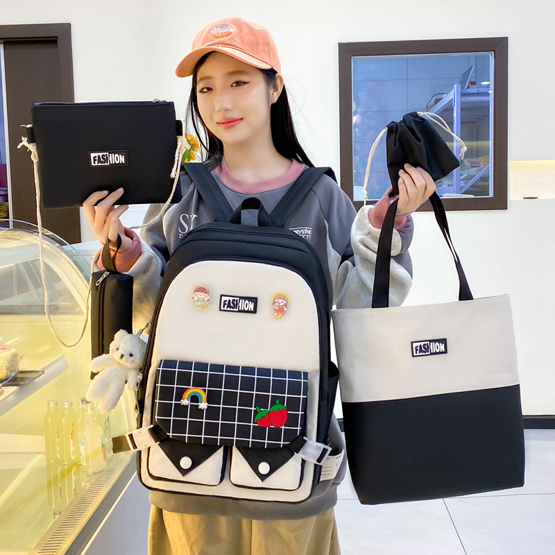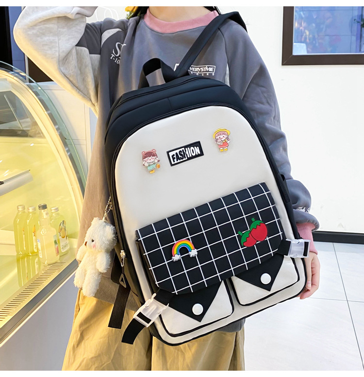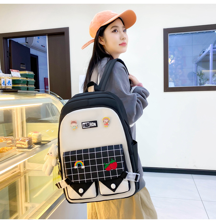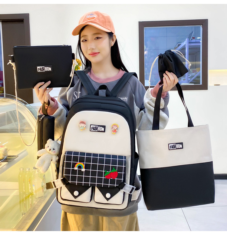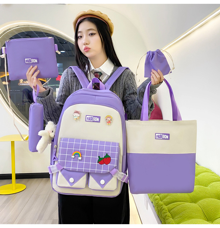 Large Capacity Versatile Fashion Plaid Five-piece Backpack
