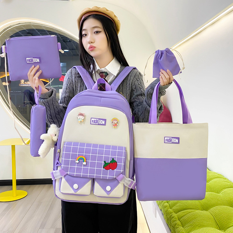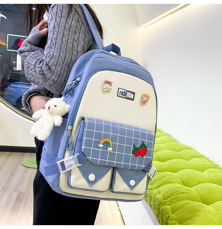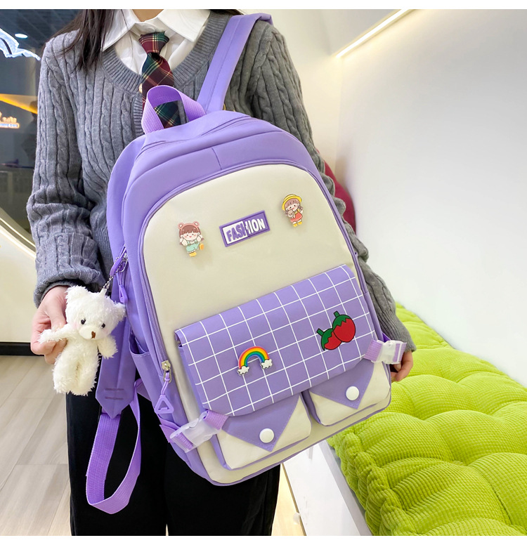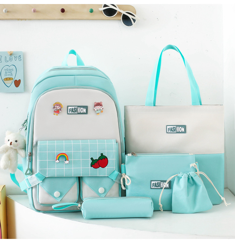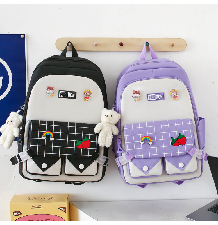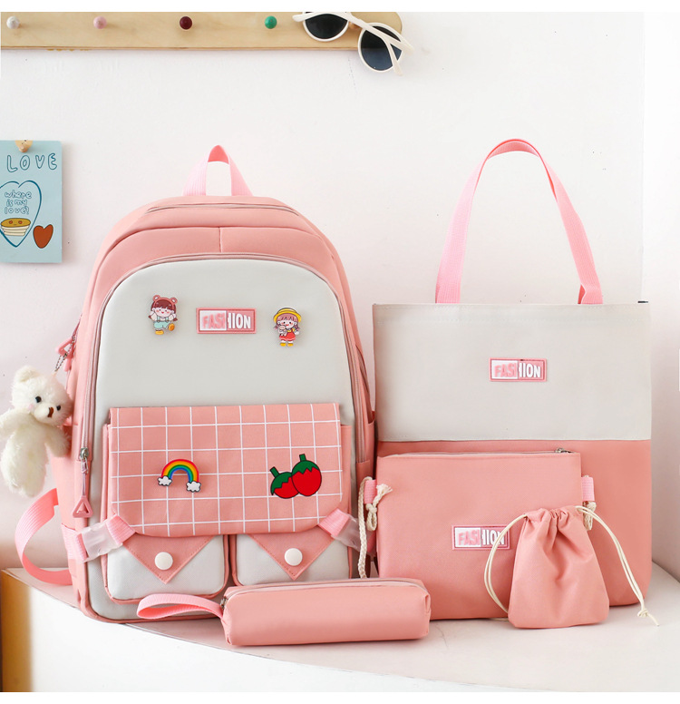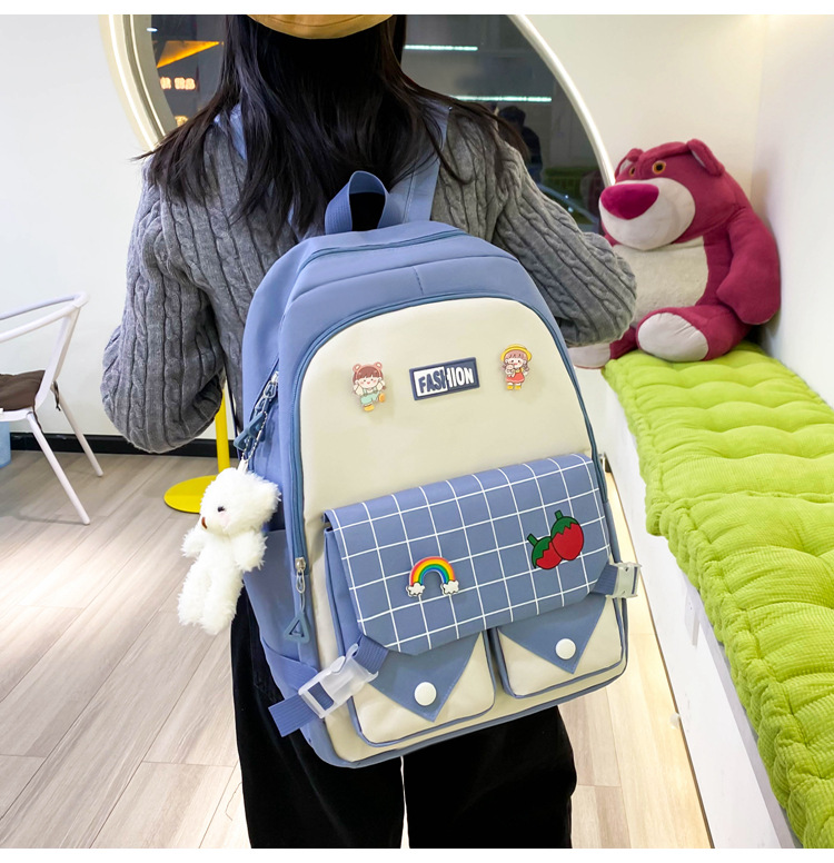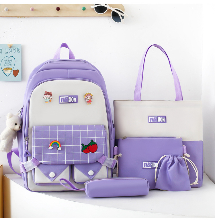 Large Capacity Versatile Fashion Plaid Five-piece Backpack