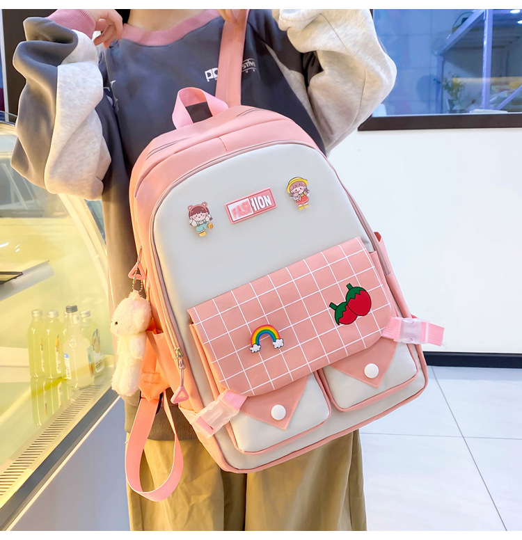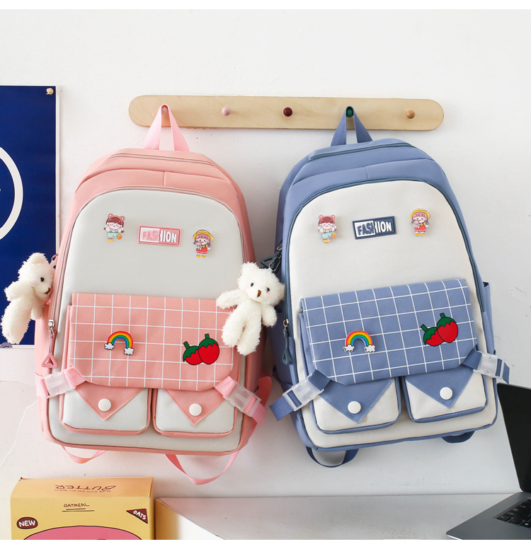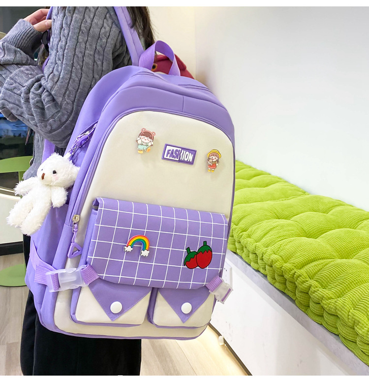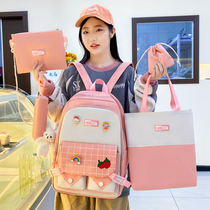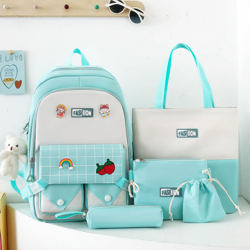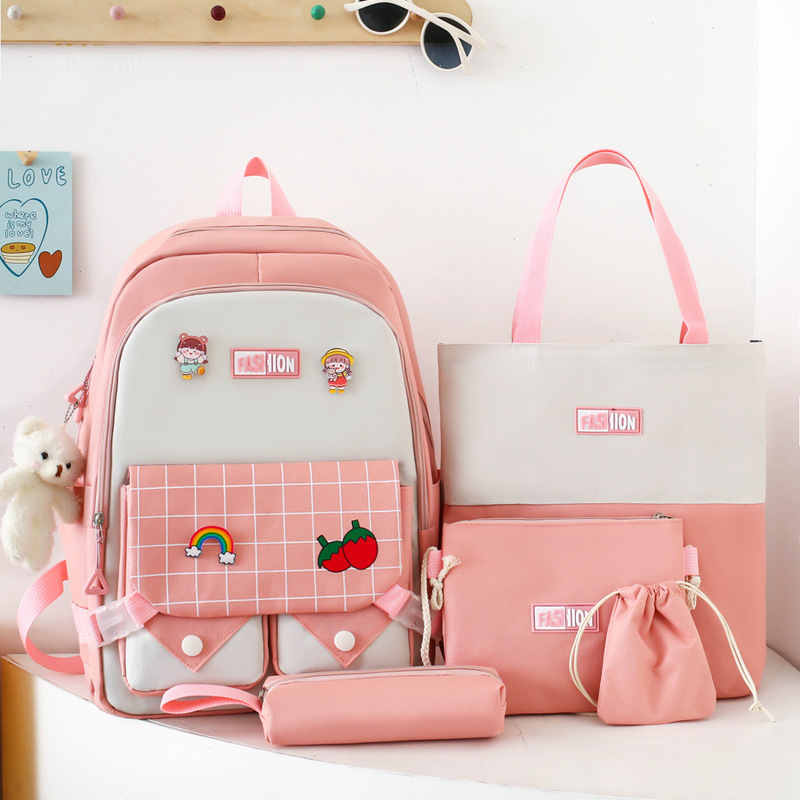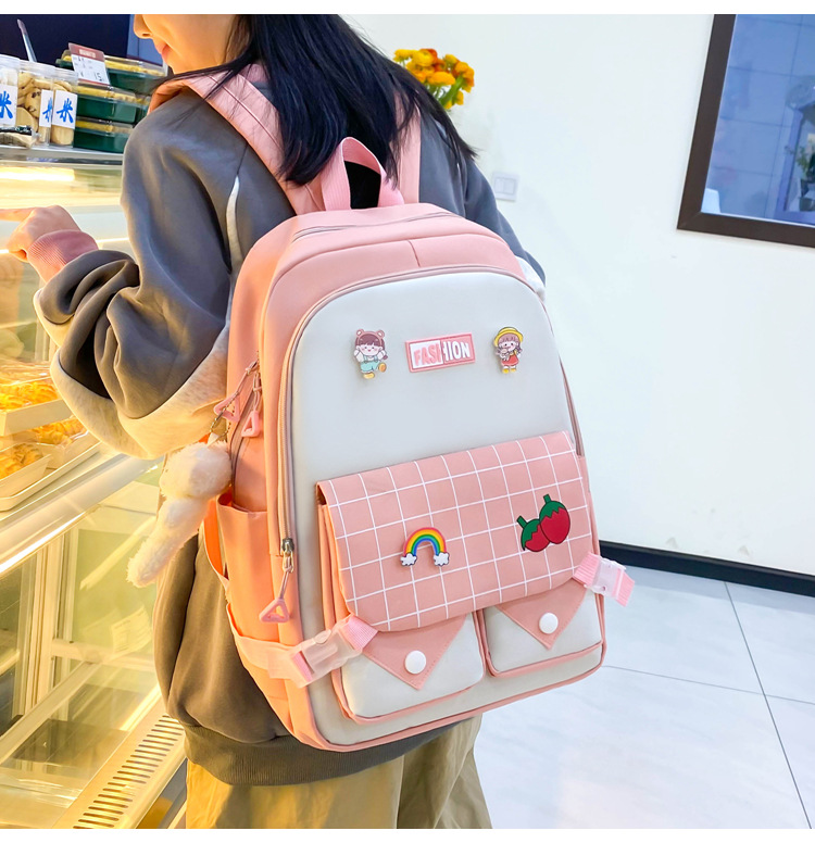 Large Capacity Versatile Fashion Plaid Five-piece Backpack