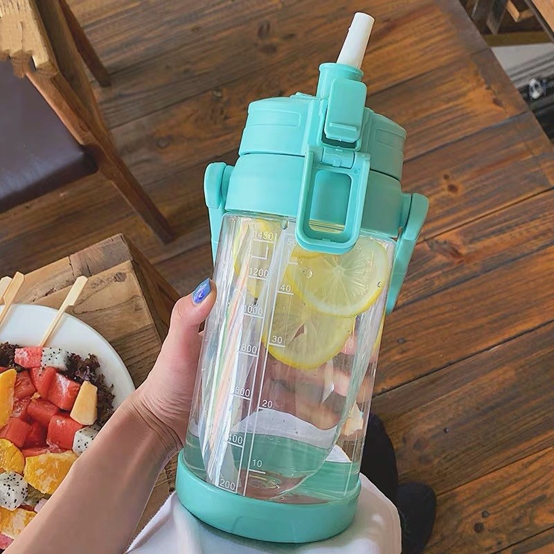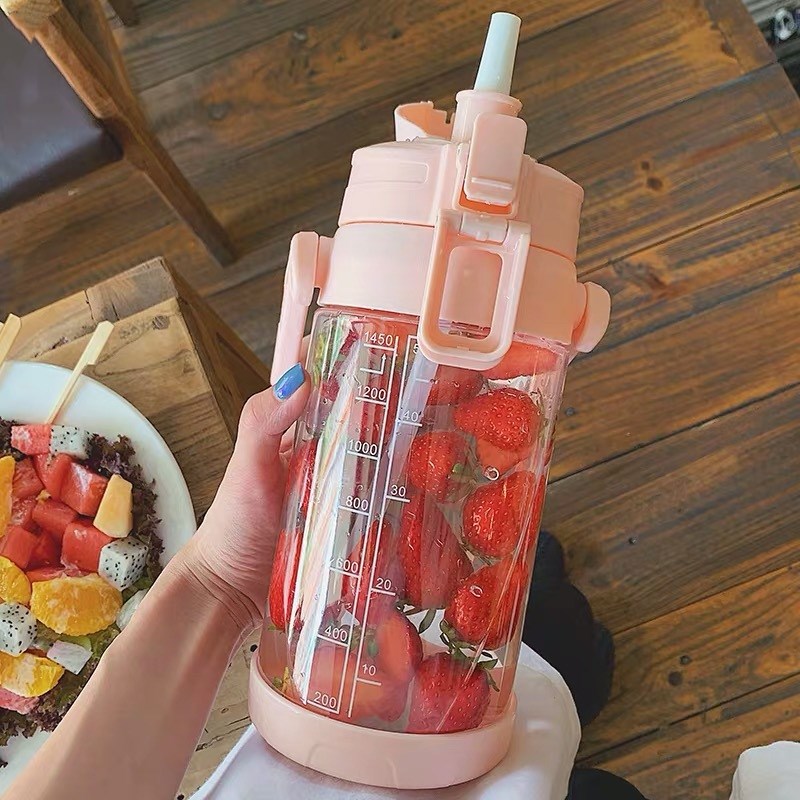 Capacity: about 1450ml;Size: about 27cm high, 11cm bottom;Material: food grade pC + food grade pp;Heat resistance: 0°C~100°C