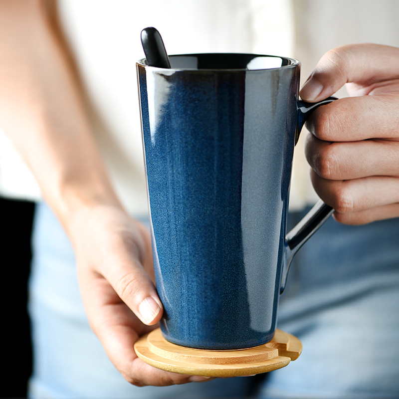 Large Ceramic Large Capacity Spoon Mug With Lid