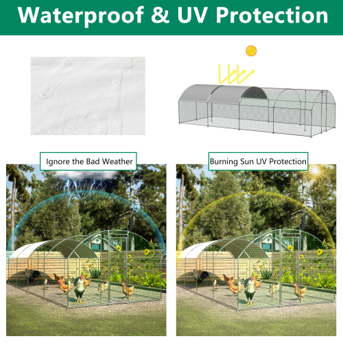 The waterproof construction protects your chickens from rain and moisture, providing a dry and comfortable living environment even in the harshest weather conditions.
