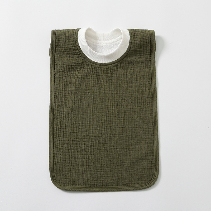 Colors: Mint Green (gauze hooded bib), Dark Green (gauze hooded bib), Light Pink (gauze hooded bib), Deep Pink (gauze hooded bib), Dark Khaki (gauze hooded bib), Brownish Green (gauze hooded bib), Gray (gauze hooded bib), Off-White (gauze hooded bib), Light Khaki (gauze hooded bib), Orange-Yellow (gauze hooded bib), Blush Red (gauze hooded bib)