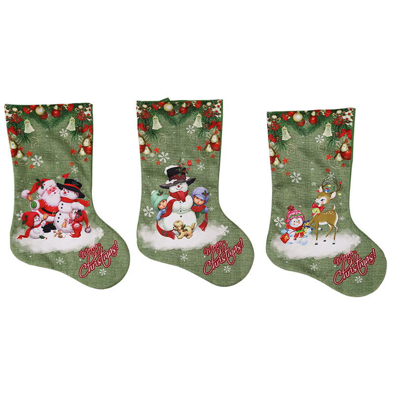 Color: green big stocking old man, green big stocking snowman, green big stocking deer