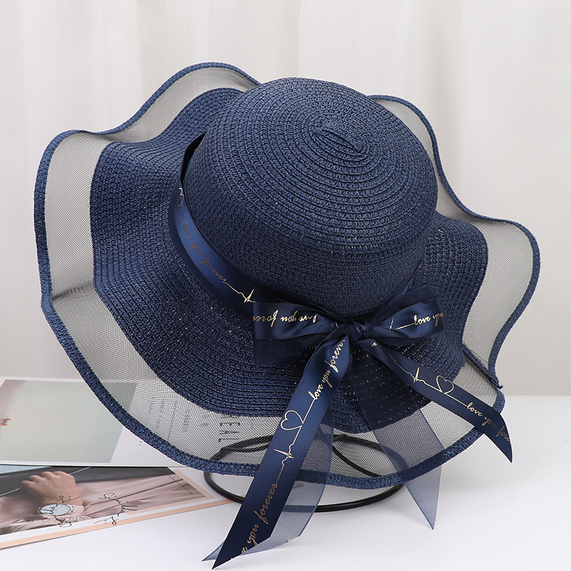 Large Eaves Bow Streamer Beach Hat Women's Outdoor Sun Protection Dome