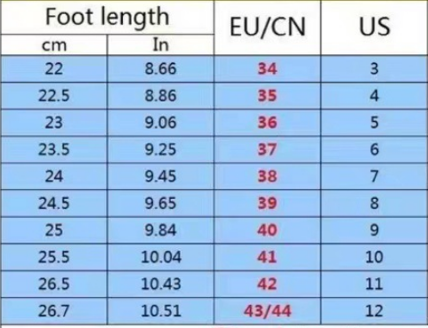 Size: 36, 37, 38, 39, 40, 41, 42, 43