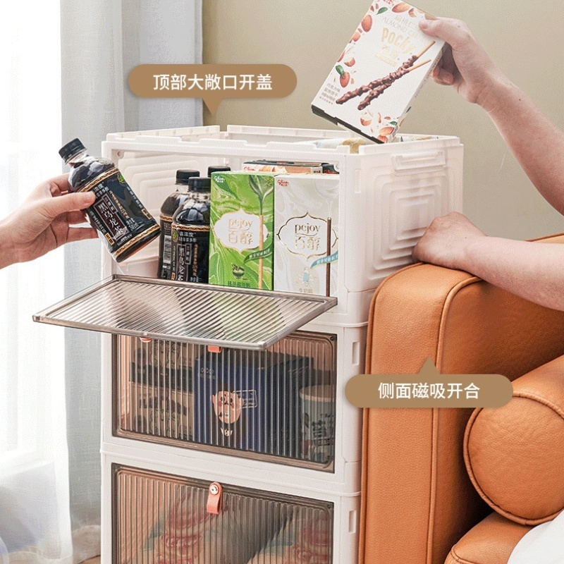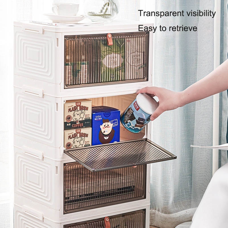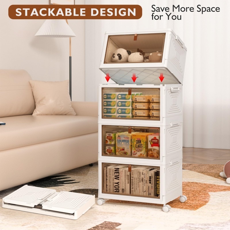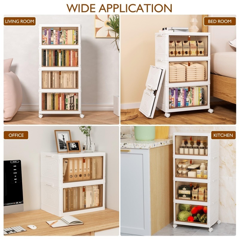 【Sturdy Material & Easy to Set Up】White folding storage box with doors is made of high quality plastic. It can withstand many heavy objects and will not be easily bent.The installation steps are so simple that you can install it in minutes.