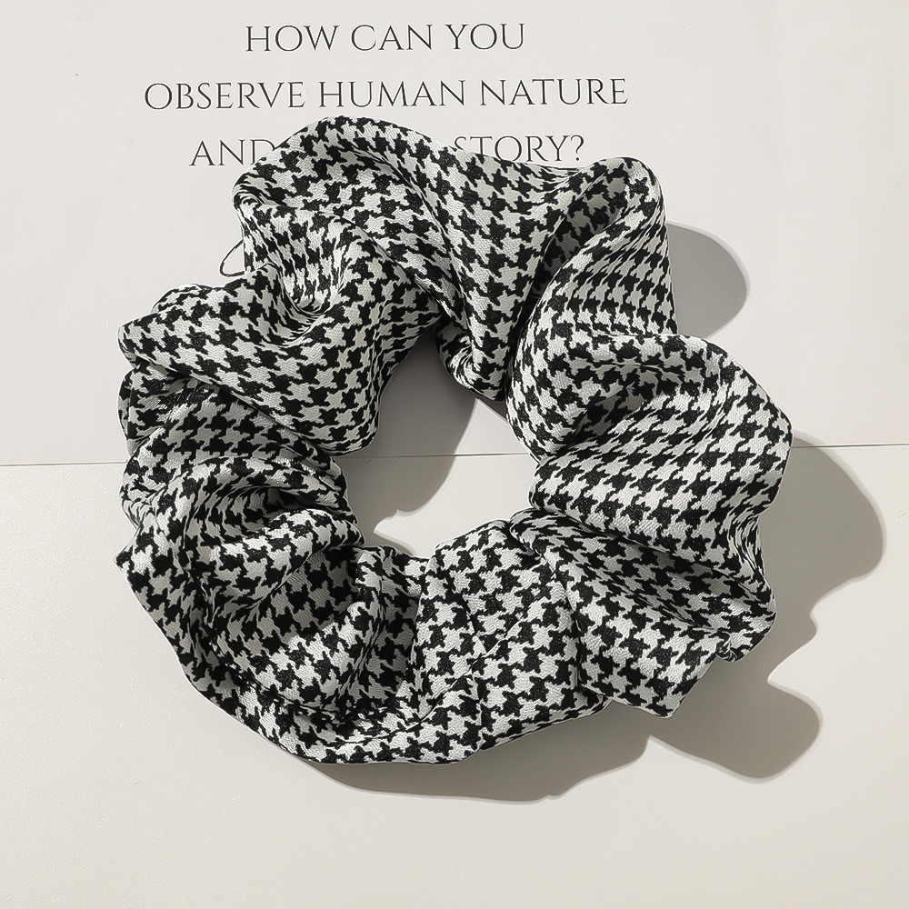 D: D43 satin large intestine ring-houndstooth black and white