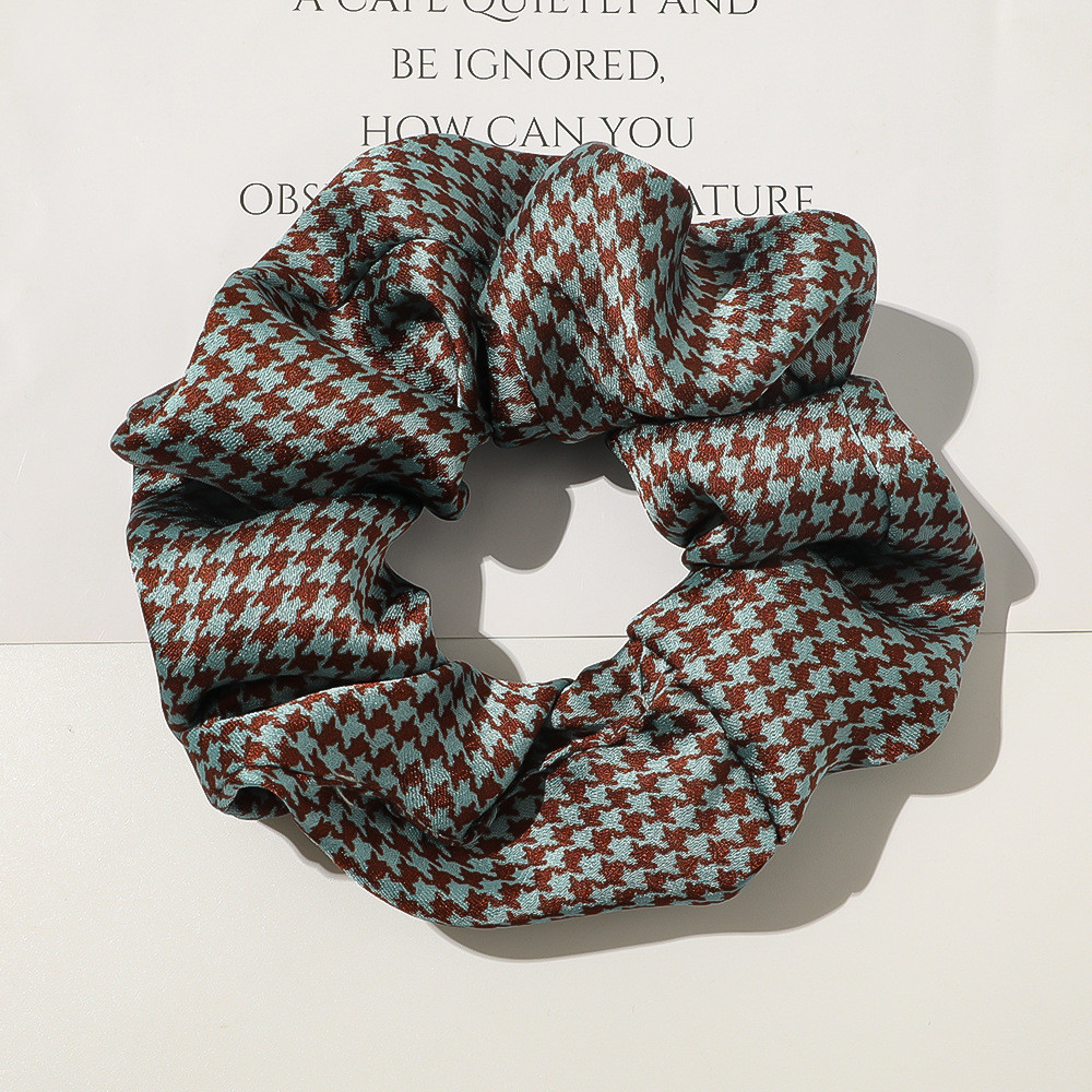 E: D43 satin large intestine ring-houndstooth peacock blue coffee