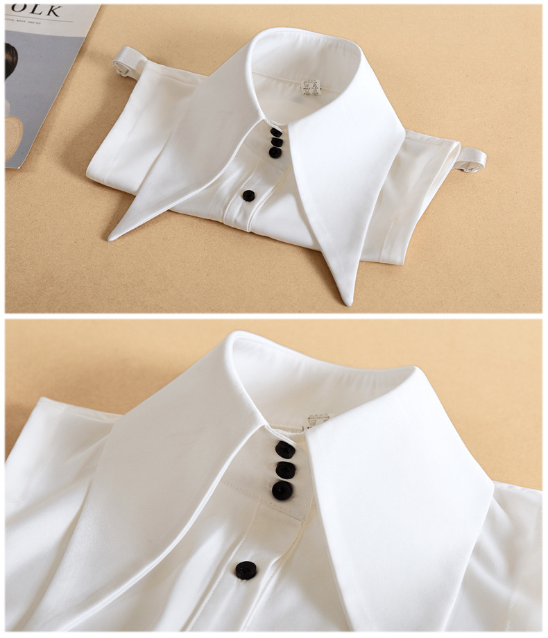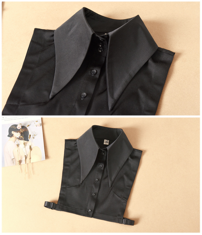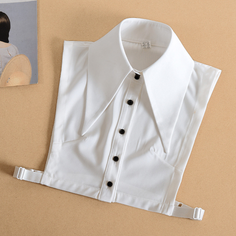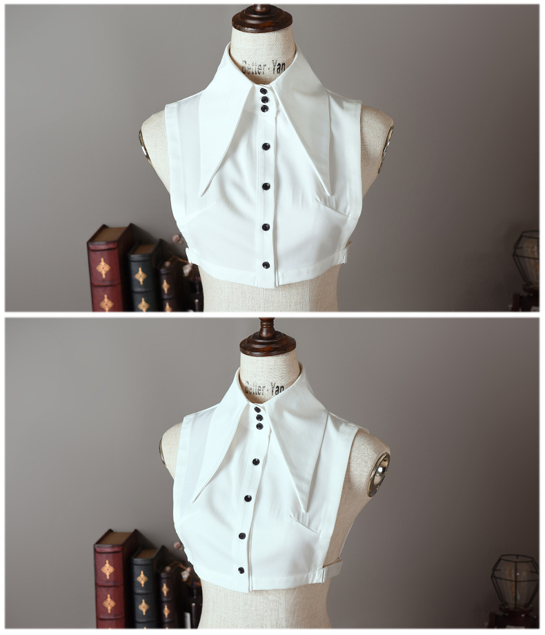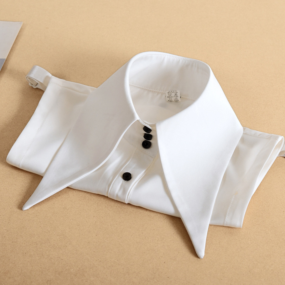 Color: three buttons large pointed collar-white, three buttons large pointed collar-Black