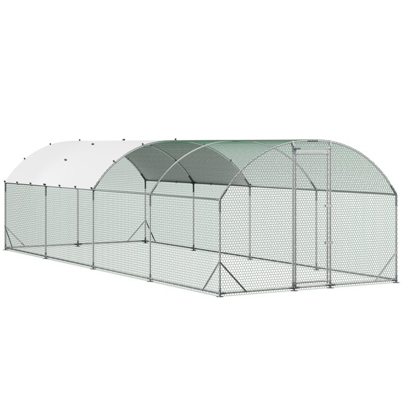 Large Metal Chicken Coop, 9 X 25 X 6.6 Ft, Walk-in Chicken Run House With Waterproof Cover & Sturdy Frame, Dome Roof Poultry Cage Duck Pen For Rabbit Hen Goose Outdoor Backyard Farm Use