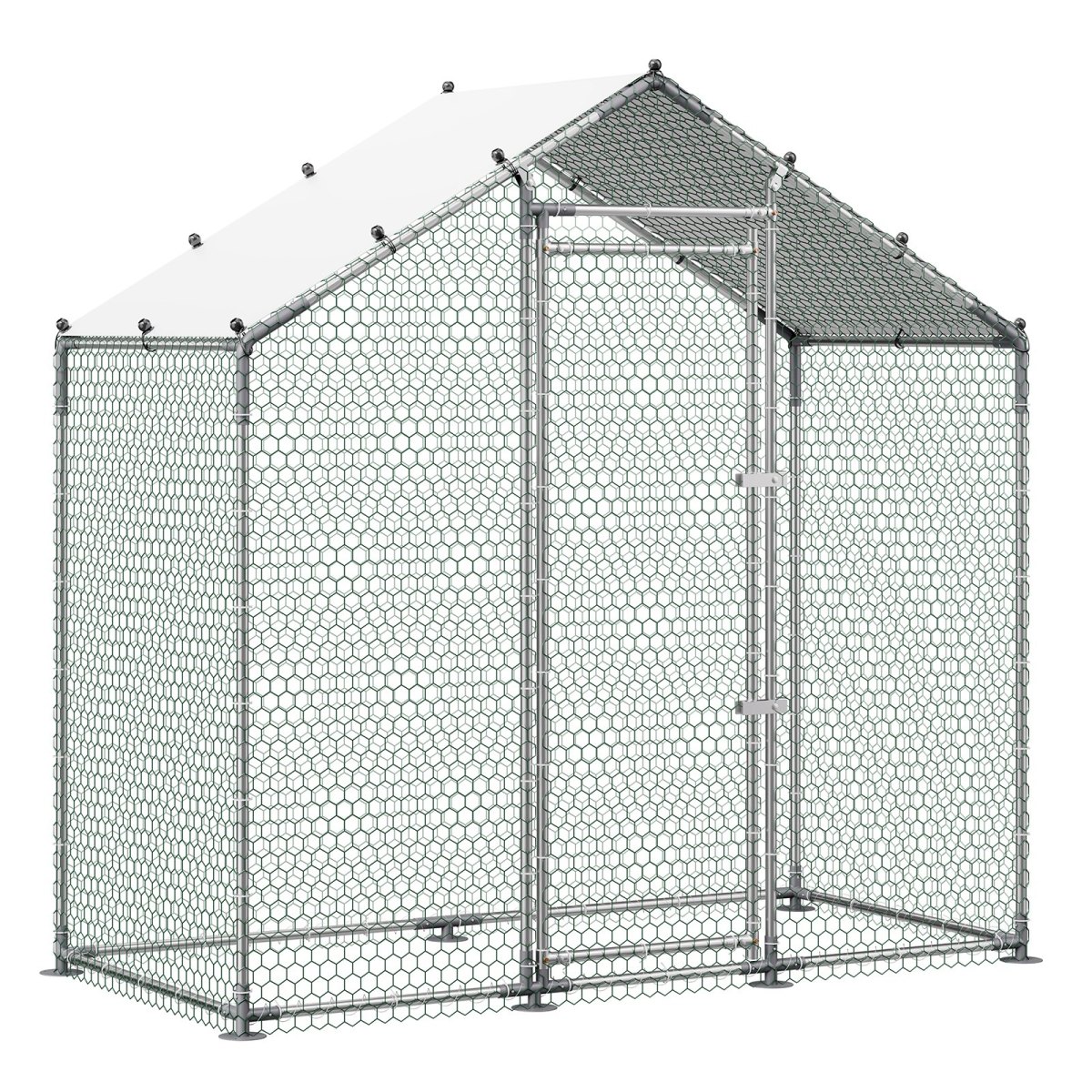 Reinforced Galvanized Steel Frame: Made from corrosion-resistant galvanized steel and anchored with ground stakes for stability. This chicken run is built to withstand strong winds, heavy snow, and harsh weather for long-lasting durability