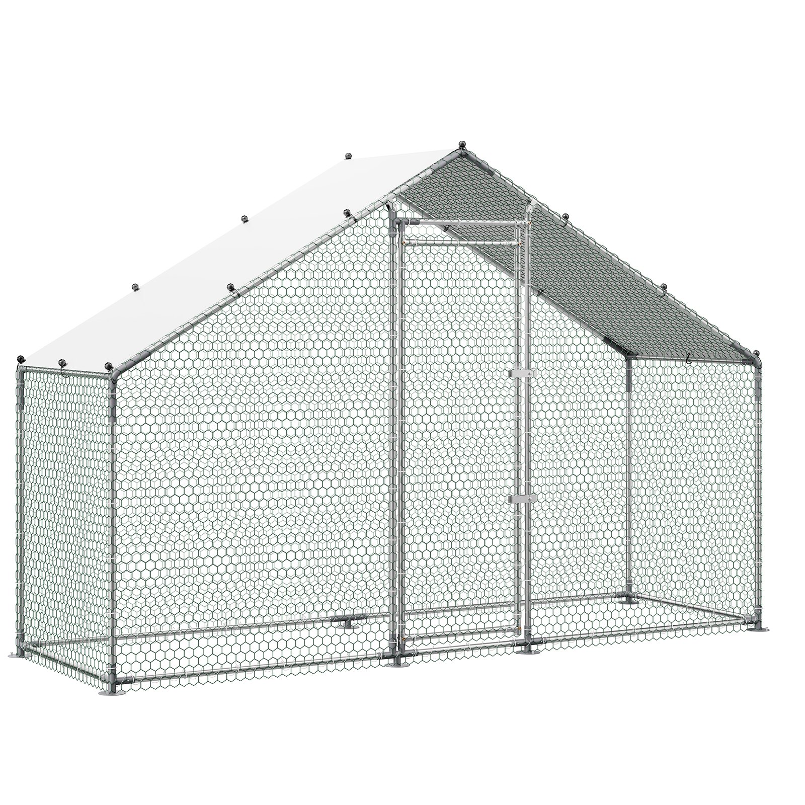 Reinforced Galvanized Steel Frame: Made from corrosion-resistant galvanized steel and anchored with ground stakes for stability. This chicken run is built to withstand strong winds, heavy snow, and harsh weather for long-lasting durability