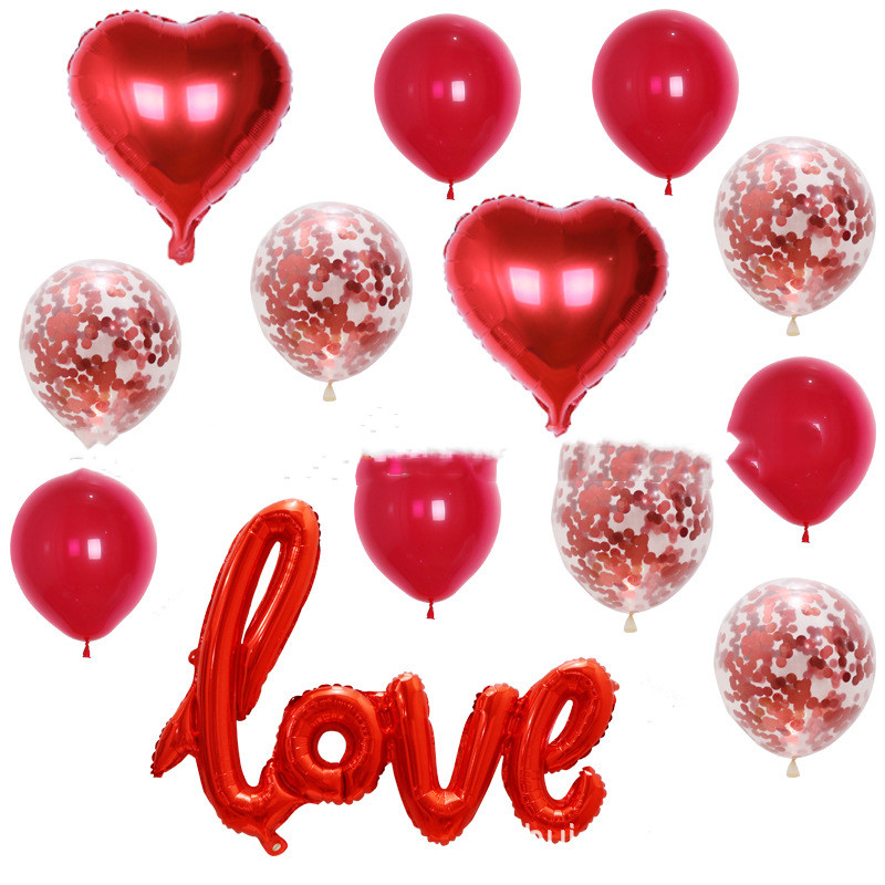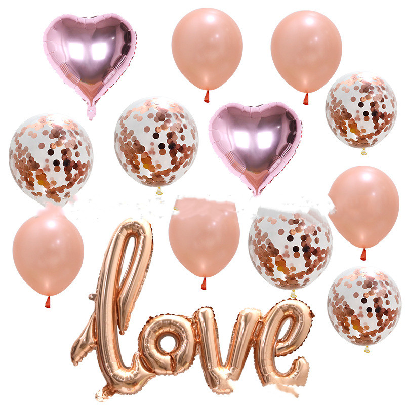 2 18-inch aluminum foil balloons + 12-inch sequined balloons 5 + 12-inch latex balloons 5 + 1 piece LOVE aluminum foil balloons