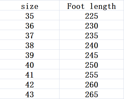 Size: 35, 36, 37, 38, 39, 40, 41, 42, 43